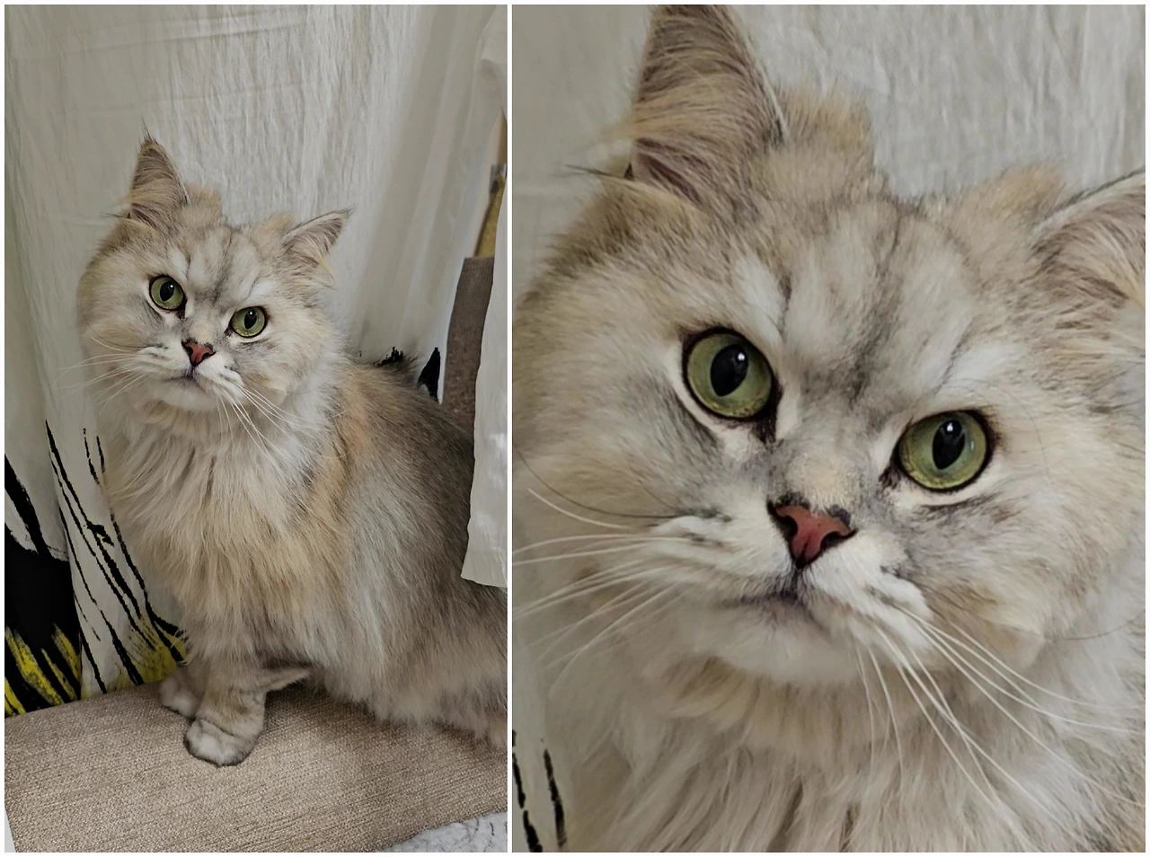 새치25/4/7, 거여동이푸푸 우리 집 고양이 푸푸는 7살,사람 나이로는 40대 중반,나와 동갑이 되었다. 오구오구~ 평생 3살 아기를 부를 때최고 행복한 표정으로 눈을 깜빡,눈키스를 해준다. 고양이는 나이가 들수록 수염이 검은색으로 변한다. 푸푸는 까만색나는 흰색.
