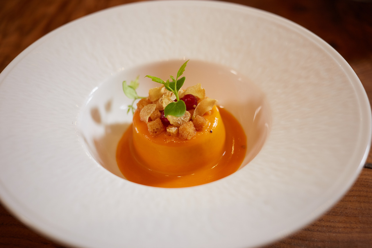 원재료의 차이는 최종 결과물의 맛에 큰 영향을 끼친다. 일반 닭과 브레스 닭의 간 풍미 차이는 말할 필요도 없고, 같은 브레스 닭일지라도 닭간의 품질에 따라 다르다는 게 그레고리 셰프의 설명이다. 브레스 닭 간으로 만든 커스터드 푸딩은 첫맛은 부드럽지만 서서히 올라오는 진한 풍미가 매력적으로 다가왔다.