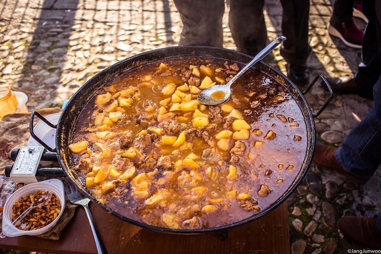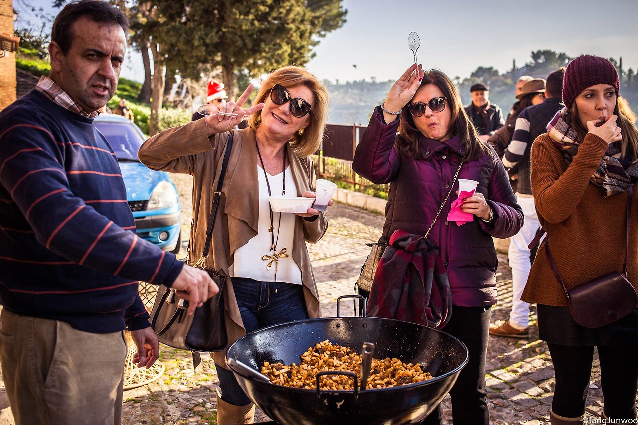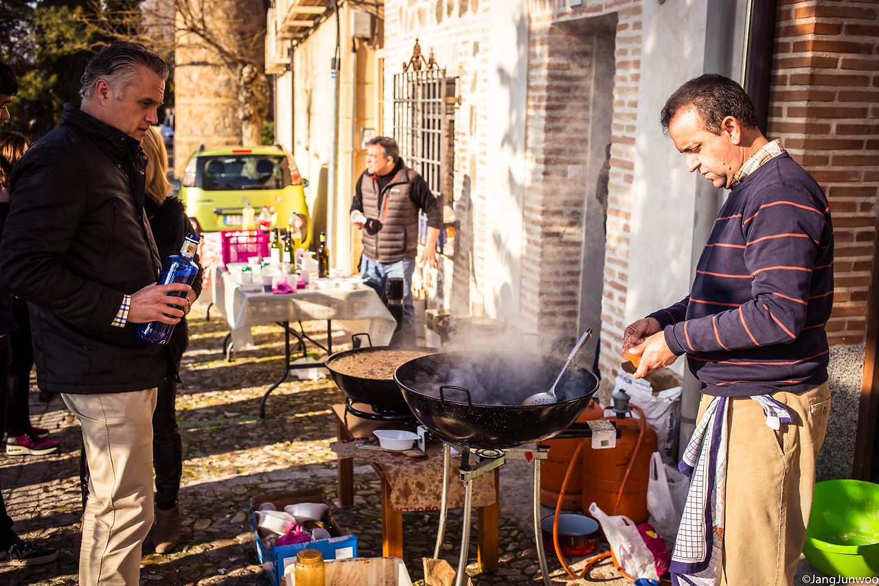 그날은 2016년의 마지막 날, 스페인의 고도(古都) 톨레도를 가로질러 흐르는 타호강의 알칸타라 다리를 향해가던 중이었다. 길가에 한 무리의 사람들이 옹기종기 모여 먹고 마시고 있는 장면이 눈에 들어왔다. 커다란 냄비 두 개가 길 위에 놓여 있고 냄비 안에선 무언가가 만들어지고 있었다. 늘 그래 왔듯 호기심에 음식 앞으로 바짝 다가가 내용물을 살폈다.