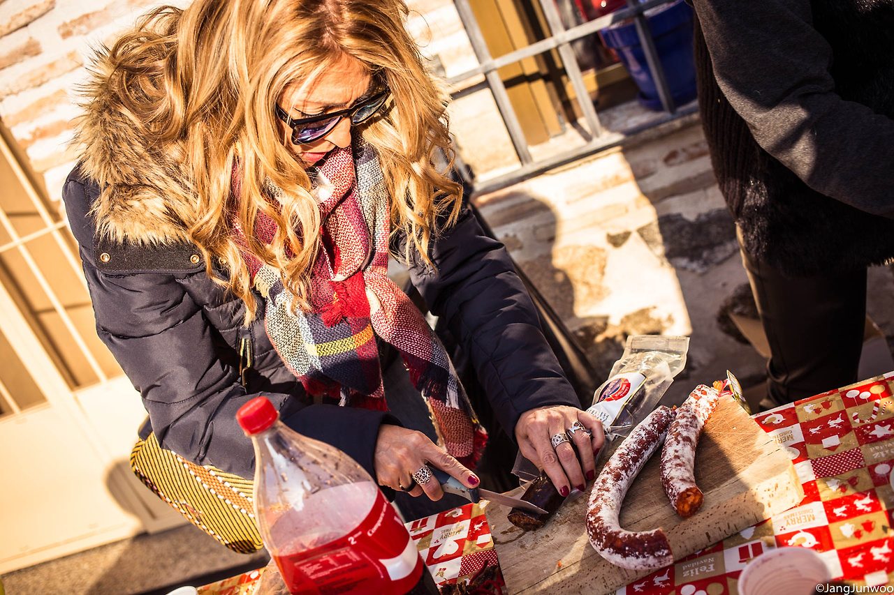 초리조와 모르시야, 돼지고기가 빵가루로 보이는 것과 함께 버무려져 있었다. 음식을 파는 노점인가 싶어 옆에 있던 한 아주머니에게 얼마냐고 물었다. 그녀는 고개를 내저으며 돈이 필요 없다는 포즈를 취하더니 음식이 담긴 한 접시를 내밀었다. 아니 이게 웬 횡재람. 정체불명의 접시를 받아 들자 갑자기 사람들이 주위로 모여들며 질문 공세를 퍼붓는다. 어디서 왔냐, 음식이 어떠냐, 한국에서 먹힐 것 같으냐 등의 질문에 대답을 하다 보니 어느새 이들 틈에 섞여 하나가 되어버렸다.