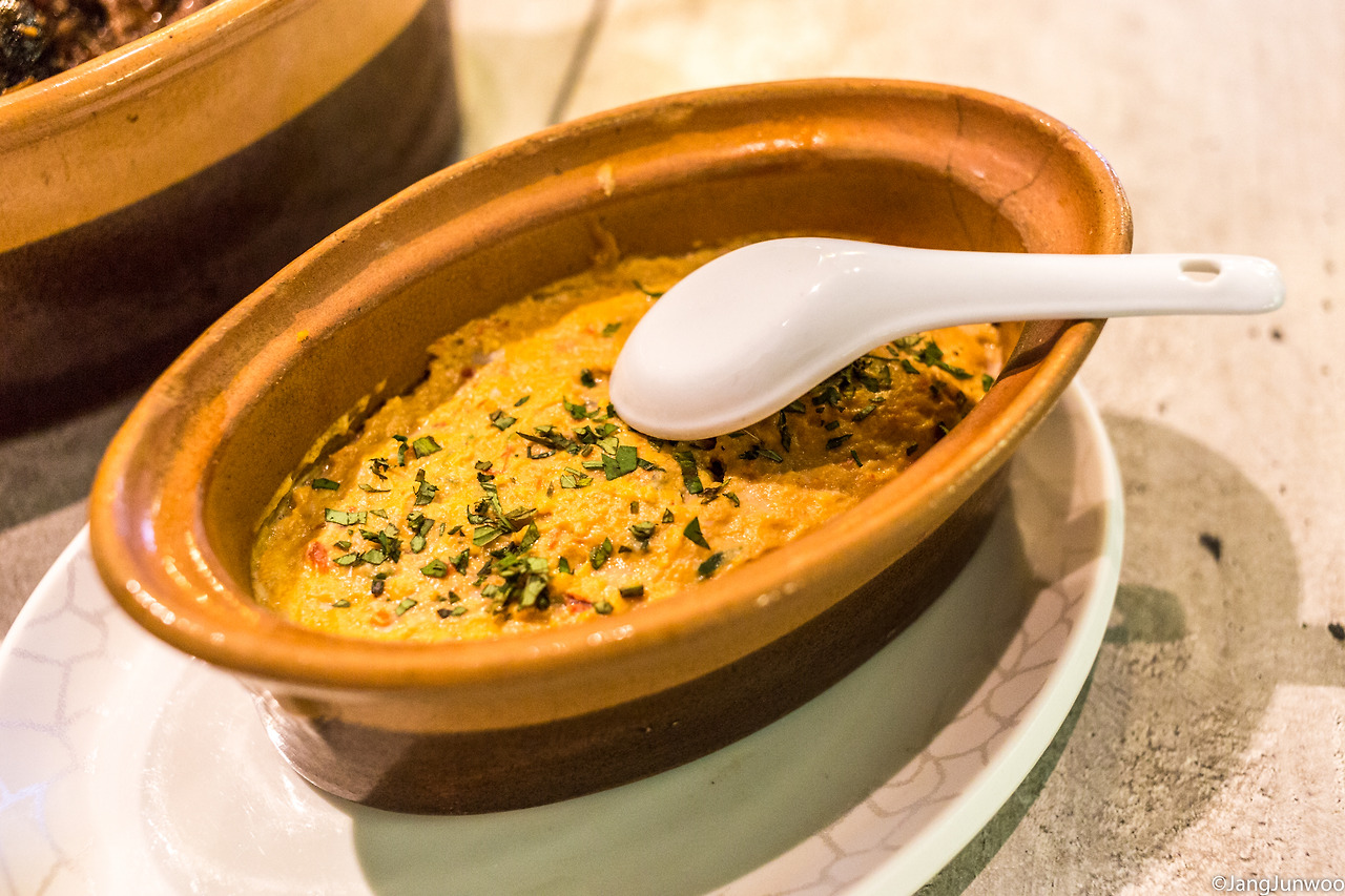 쁘띠에서 맛 본 오탁 오탁은 계란찜과 같은 형태로 접시에 담겨 나왔다. 은은한 향신료의 맛과 생선 어묵의 맛이 익숙하면서도 독특하다. 한 마디로 표현할 수 없는 복잡한 풍미가 인상적이다.