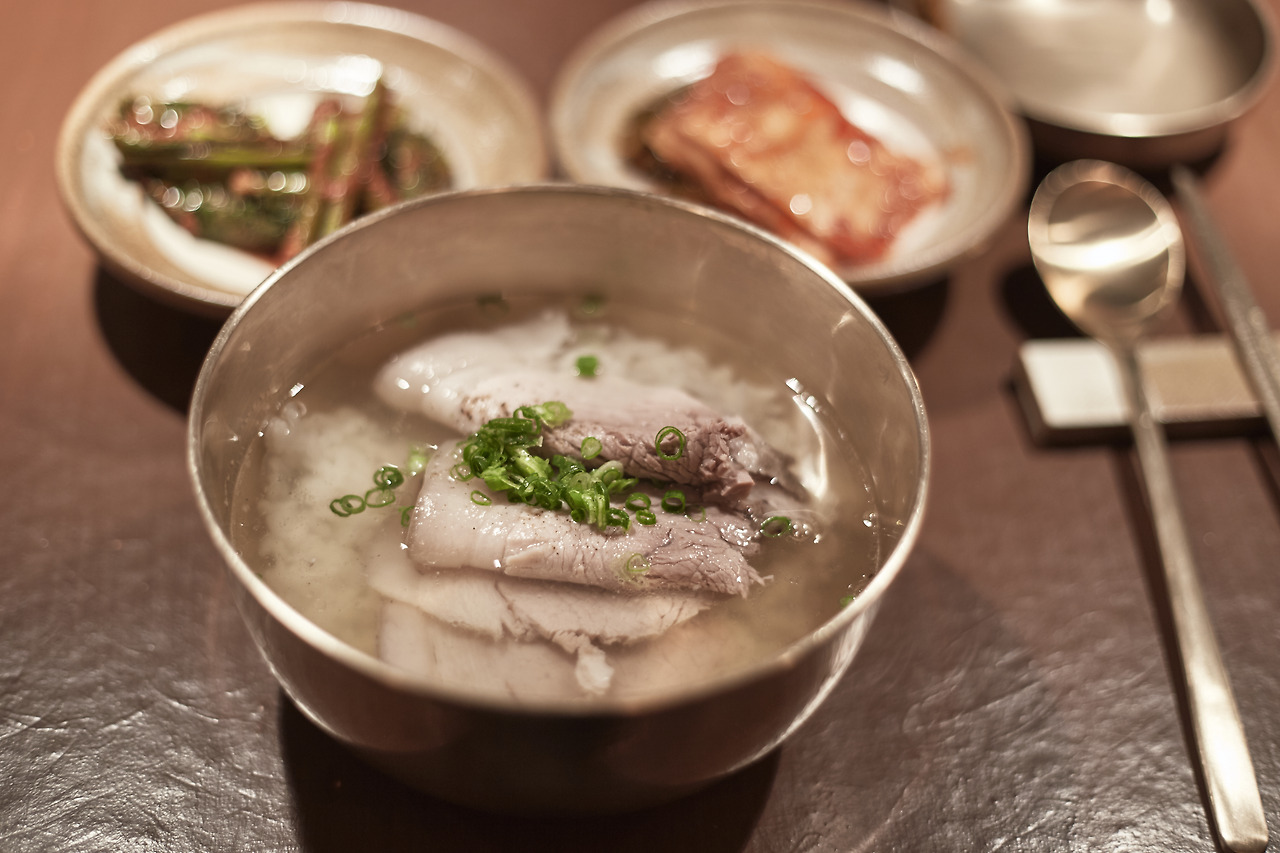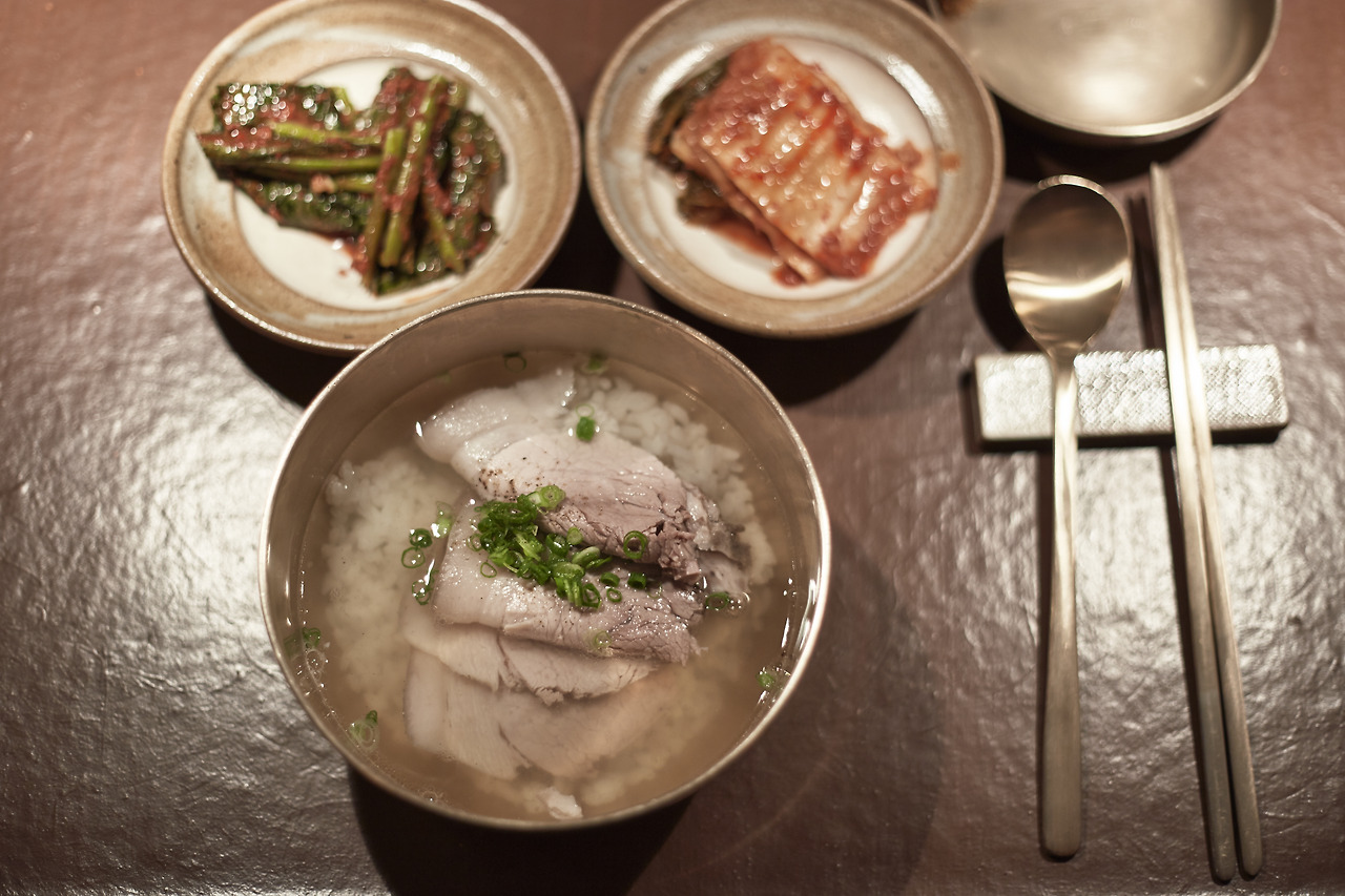 언뜻 보기에 예쁘게 잘 담아낸 곰탕 한 그릇 같지만 정성을 엿볼 수 있는 디테일이 숨어있다. 얇게 썰어낸 돼지수육은 일본의 한 라멘집에서 얇게 썬 챠슈를 보고 아이디어를 얻었다. 4시간 동안 고압에서 삶아 그렇잖아도 부드러운 수육이 입안에 넣으면 스르르 녹는다. 토렴도 빼놓을 수 없다. 국물에 밥이 들어 있으면 쉽게 퍼지는 데 이를 막기 위해 뜨거운 국물을 밥에 여러 번 부어 전분기를 씻어주는 것을 두고 토렴이라 한다. 토렴용 국물도 따로 쓰고 자주 갈아주는 정성도 잊지 않는다. 쌀은 쌀알이 크고 찰지지 않은 ‘신동진’ 쌀을 쓴다. 토렴을 하고 난 뒤에는 새 육수를 부어 맑은 국물을 손님에게 낸다.