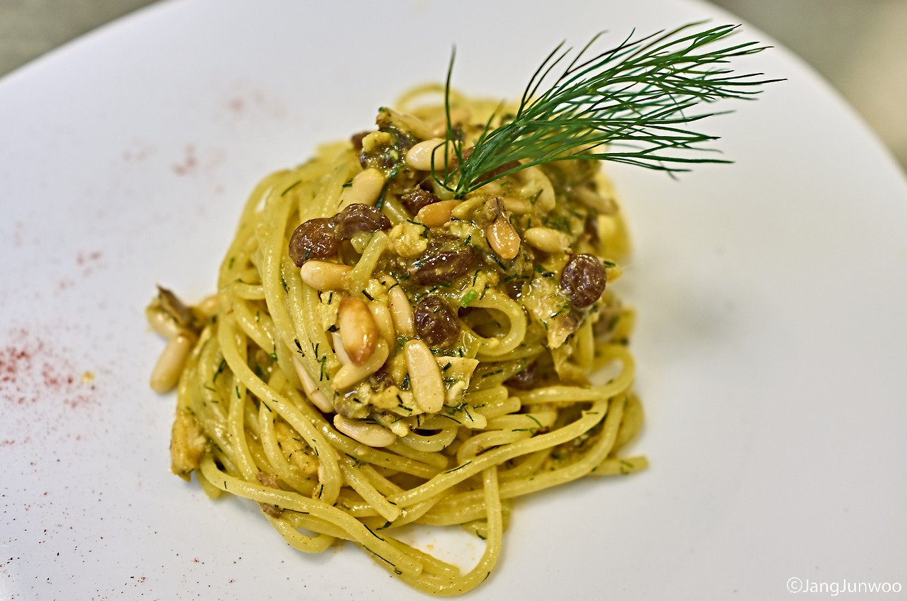 현대 이탈리아 파스타의 핵심은 면과 소스의 일체화에 있다. 무슨 말인가 하면 파스타를 만드는 과정에서 가장 중요한 건 파스타 면에 유화(Emulsion)된 소스를 달라붙게 해야 한다는 점이다. 잘 만든 이탈리안 파스타란 소스를 숟가락으로 떠먹을 필요도 없을 정도로 소스가 면에 한 몸처럼 달라붙어 있는 파스타를 말한다. 소스가 면을 타고 주르륵 흘러내리지 않아야 하고, 먹고 나면 접시에 소스가 흥건하게 고여 있지 않아야 하는 게 정석이다. 파스타를 주문하면 스푼을 주지 않는 이유다. 자작한 국물과 같은 소스에 갓 삶은 면을 말아 넣고 손님이 비벼먹는 파스타는 적어도 이탈리아식은 아니라는 소리다.