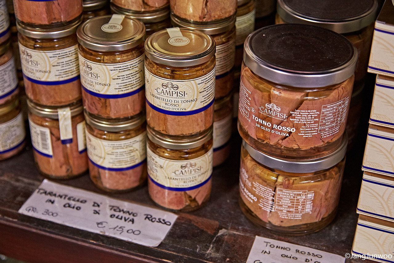 전통적으로 이탈리아 참치는 한번 쪄낸 후 올리브유에 담갔다가 병에 담아 가공됐다. 통조림은 음식물의 보존 기한을 획기적으로 늘린 위대한 발명이지만, 알고 보면 전통적인 음식 보존방식의 연장선상에 있다고 할 수 있다. 이탈리아에서 생산되는 통조림 참치는 올리브유에 한번 절이는 과정을 거치기에 우리가 늘 먹는 것과는 풍미가 조금 다르다. 하지만 그래도 퍽퍽한 살코기란 점에선 큰 차이가 없다. 참치에게 그저 미안할 따름이다.