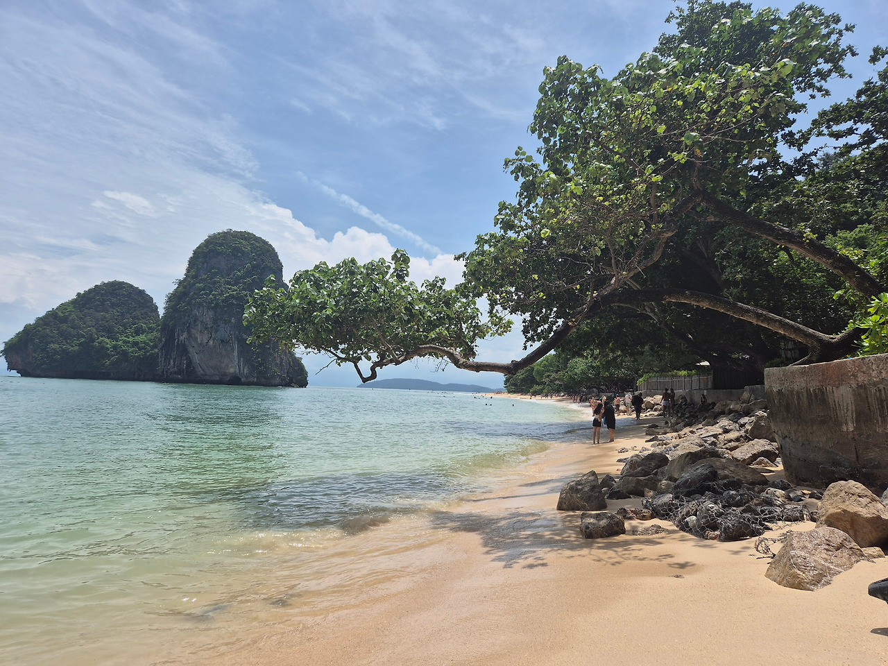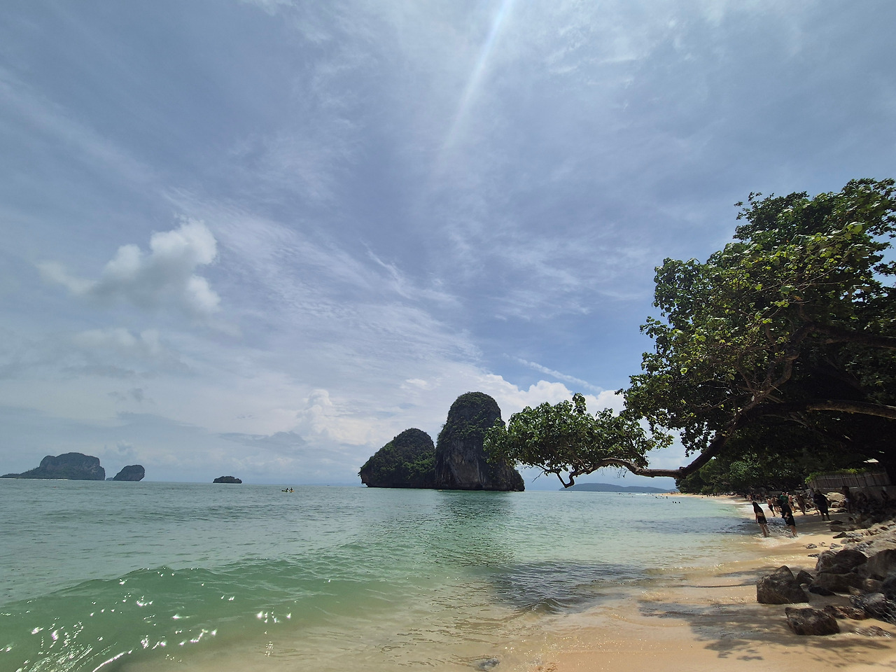 프라낭비치는 라일레이 비치에서도 한참을 걸어가야 했는데 무더운 날씨 속에서도 가는 길에 볼거리가 쏠쏠했다. 암벽을 오르는 클라이머들을 구경하고, 나무 위에서 재빠르게 움직이는 원숭이를 발견하기도 했다. 거대한 바위들이 만들어낸 자연의 조각품 같은 풍경에 감탄하면서도, 더운 날씨에 지쳐가던 찰나, 드디어 프라낭 비치가 눈앞에 펼쳐졌다.