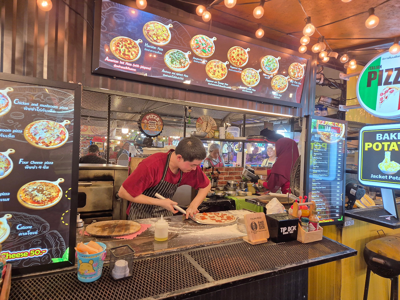 시장 한쪽에서는 정체성이 의심되는 오코노미야키가, 또 다른 곳에서는 화덕 피자가 구워지고 있었다. 태국 야시장에서 이국적인 음식들이 즐비해 다소 당황스러웠지만, 우리는 결국 화덕에서 구워지는 피자의 유혹을 이기지 못하고 페퍼로니 피자 한판을 주문했다. 나중에 깨달은 사실, 이곳이 관광객을 위한 야시장이라는 것, 그리고 나 역시 그 관광객 중 한 사람이었다는 것.