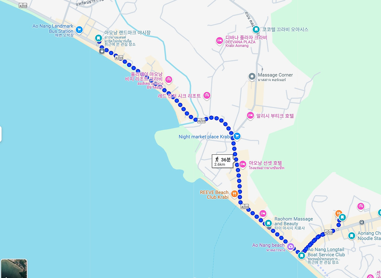 구글맵으로 검색해 보니 아오낭 야시장까지 걸어서 36분이 걸린다고 나왔다.