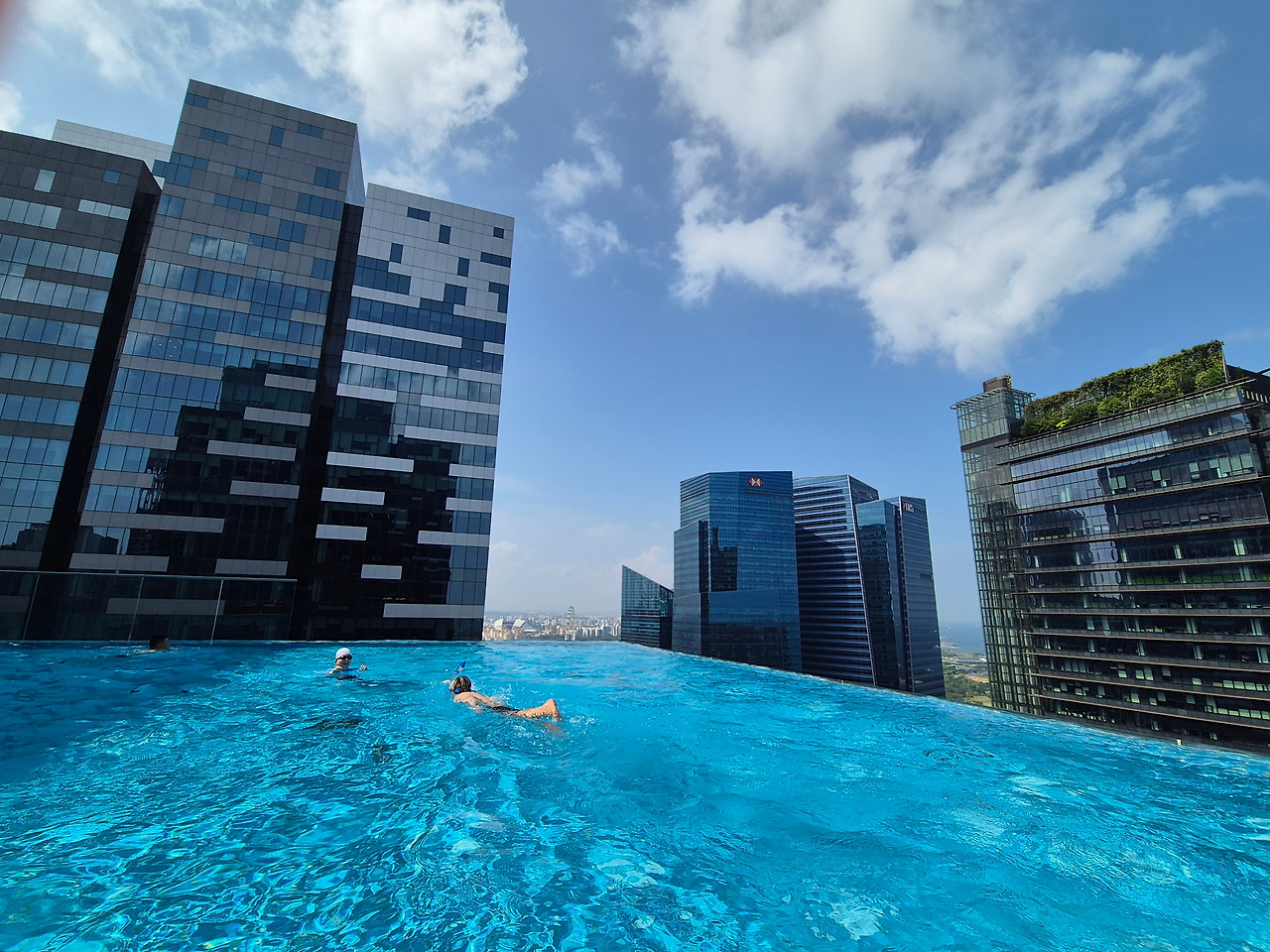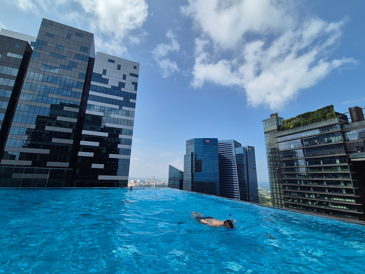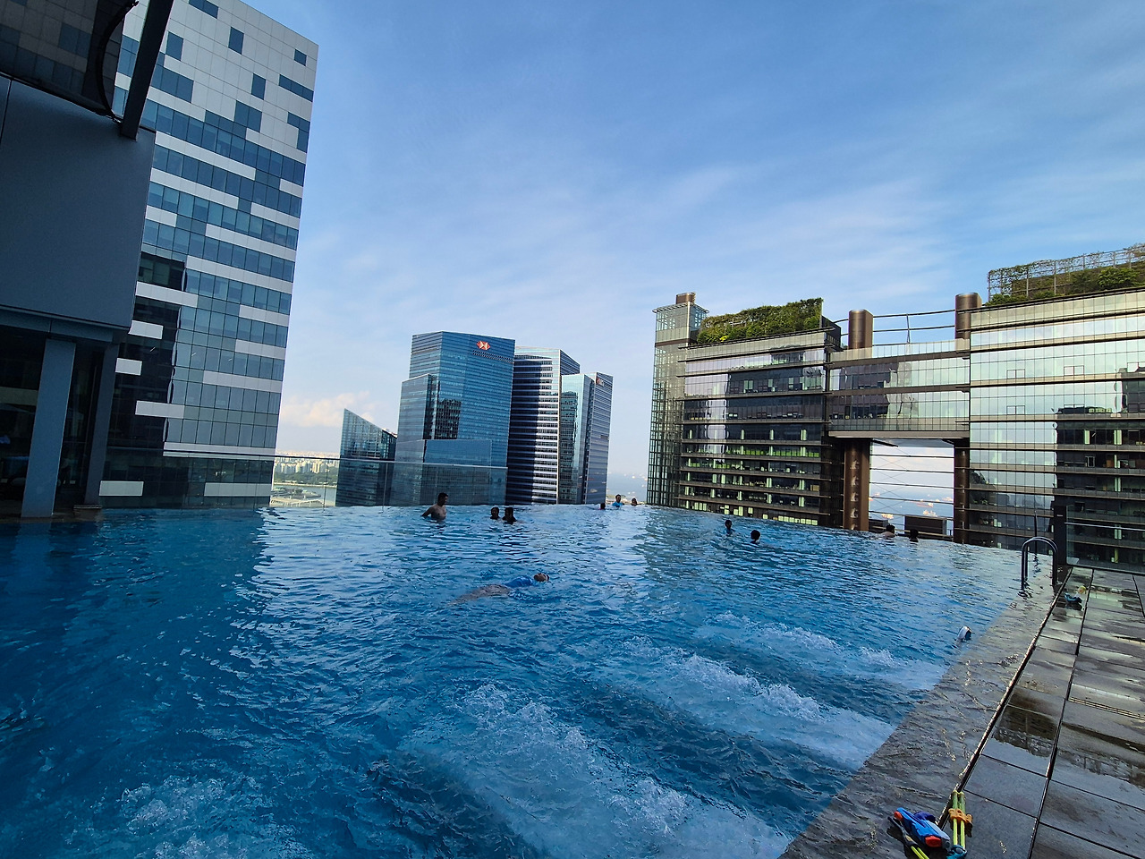 웨스틴 호텔의 수영장은 크지도 작지도 않은 적당한 크기였다. 높은 빌딩들 사이에 둘러 쌓여 있어, 그 풍경이 정말 장관이었다.