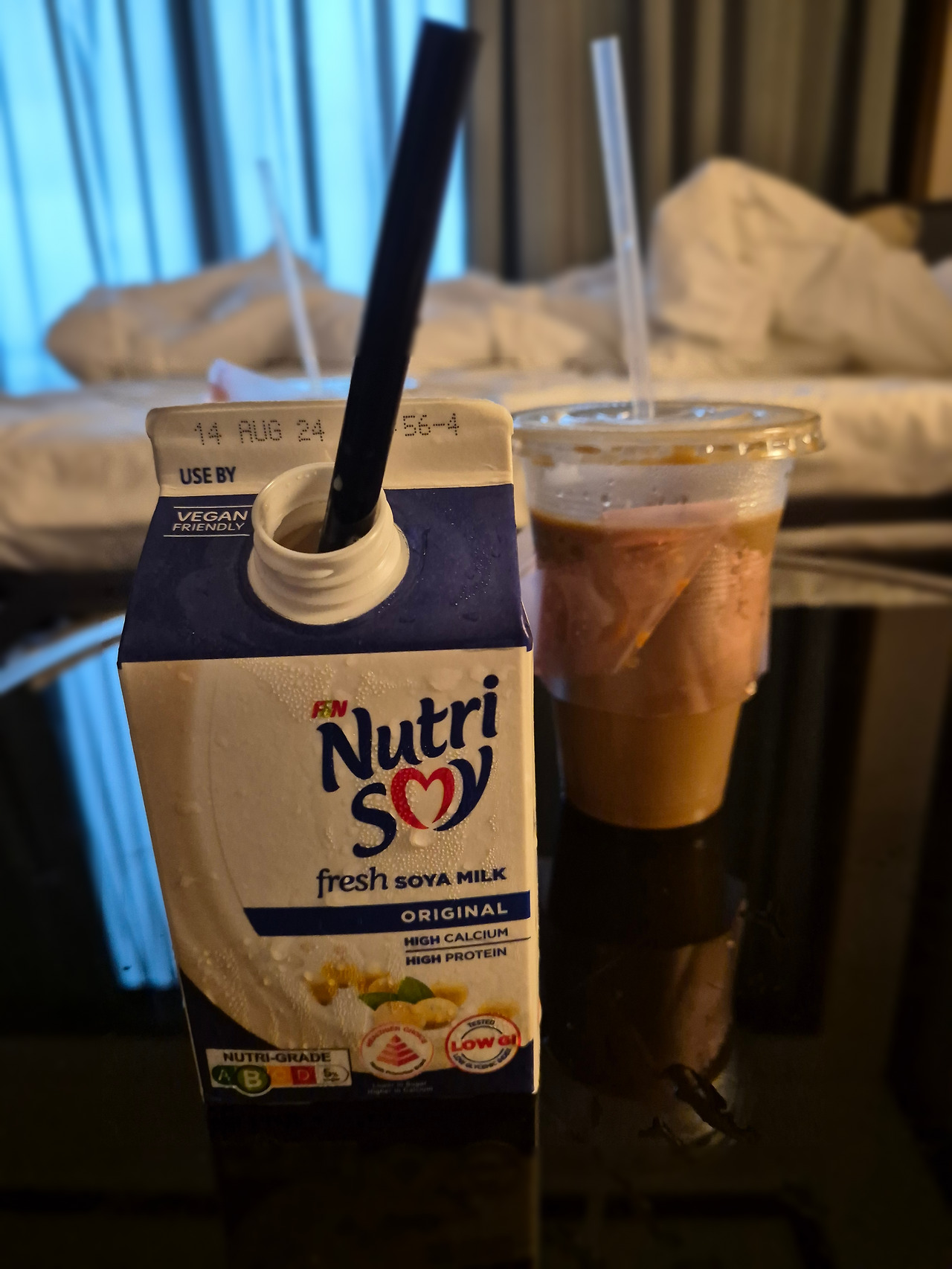 2불 50센트를 주고 사온 달달한 아이스 라테와 편의점에서 산 Soy Milk다.