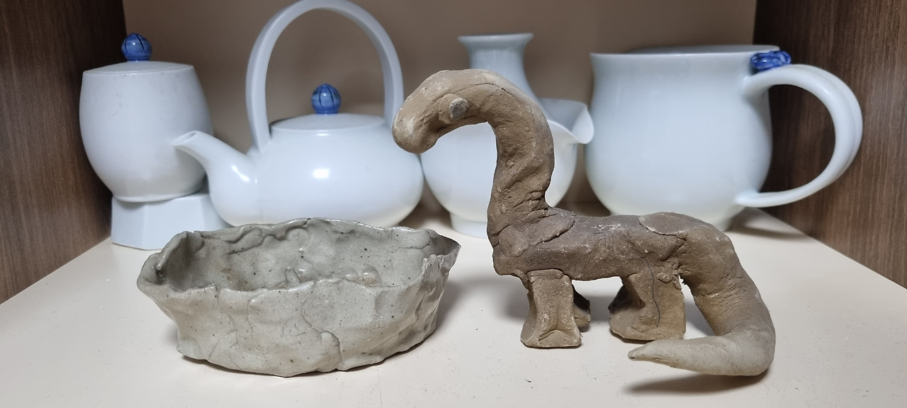 어릴 적 아들이 만든 찰흙 공룡을 보관 중이다.