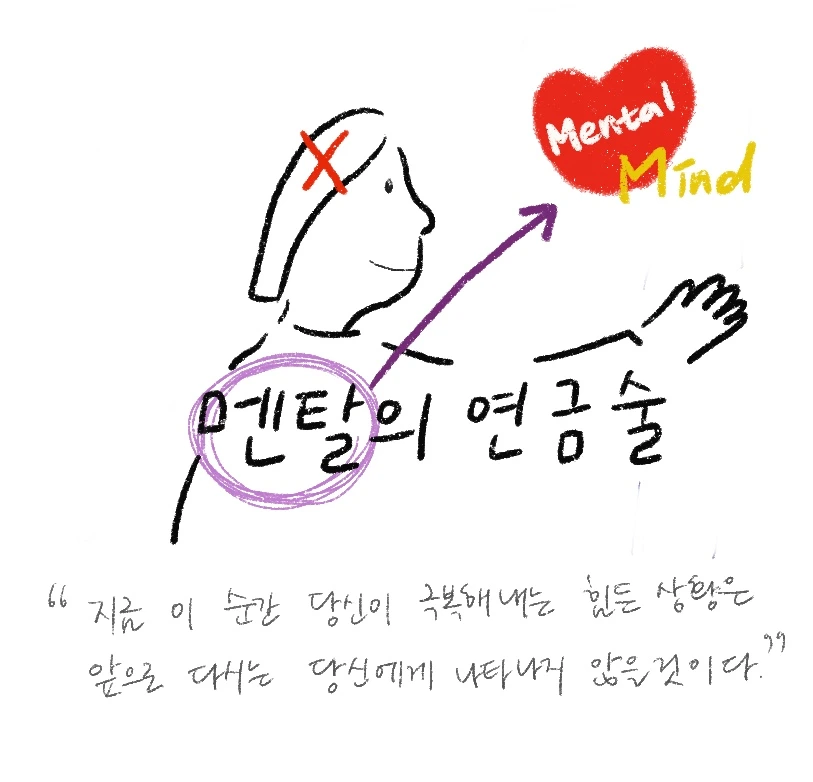 멘탈의 사전적 정의는 ‘정신’이다. 정신이라 하면 흔히 이성적 사고, 머리로 하는 일을 떠올리게 된다. 하지만 책을 읽다보니 멘탈이란 감정, 마음이 하는 일이라는 생각이 든다. ‘멘탈이 약하다. 쿠크다스다’라는 비유는 머리가 아닌 마음의 영역이다.