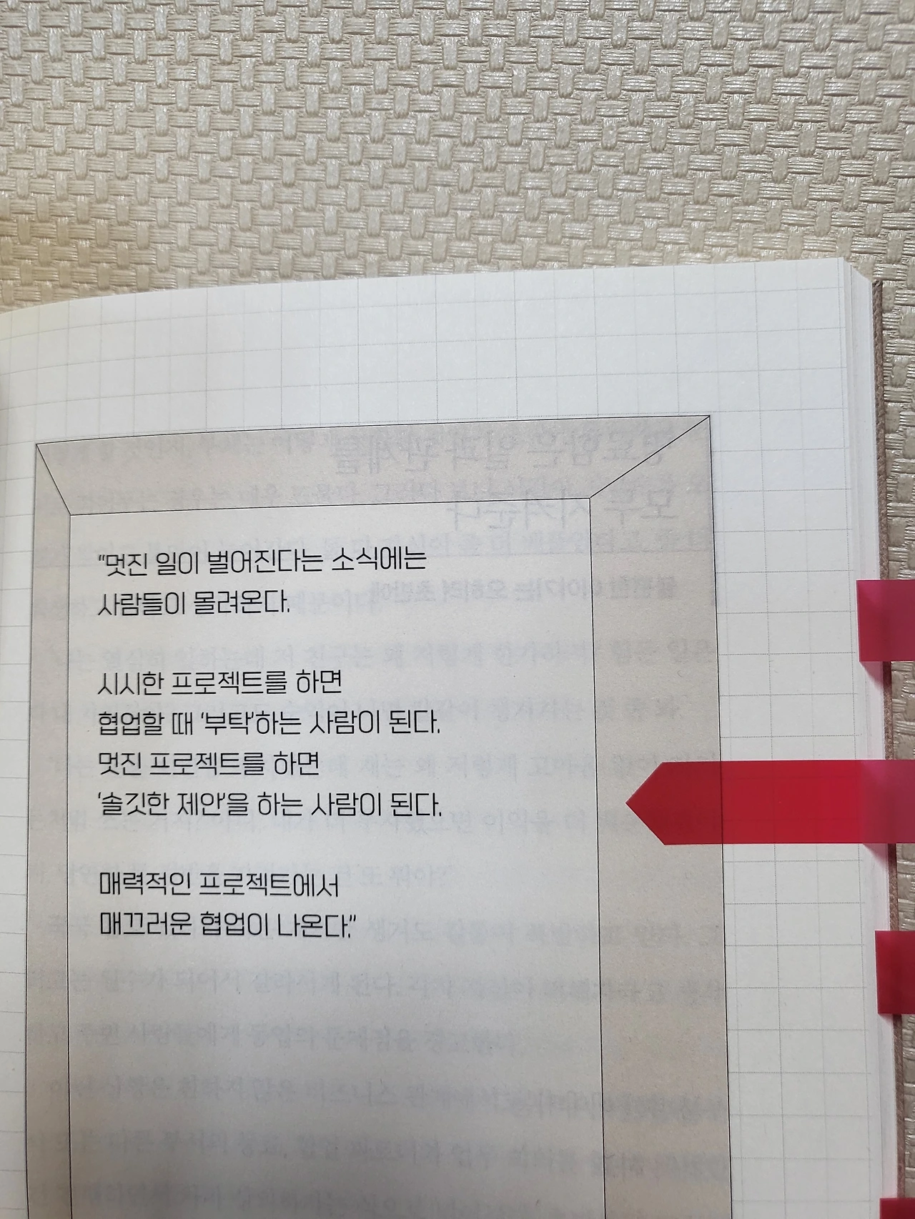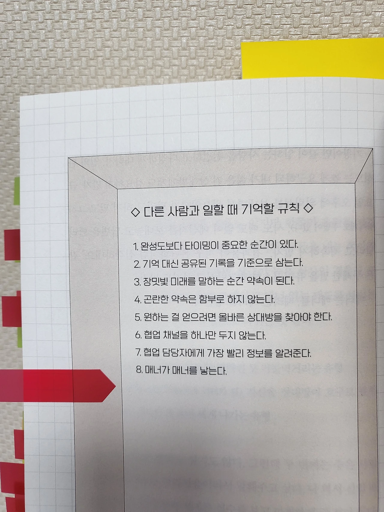 제한 시간 안에 완결하는 법, 상대방 중심으로 생각하는 관점, 하기 싫은 일을 줄이는 법, 마음을 지키며 일하는 법 같은 소소한 일들 말이다.