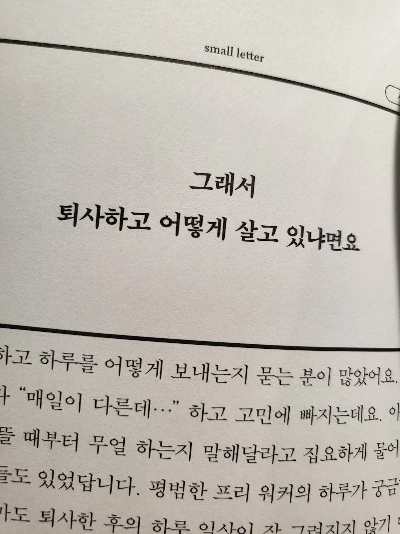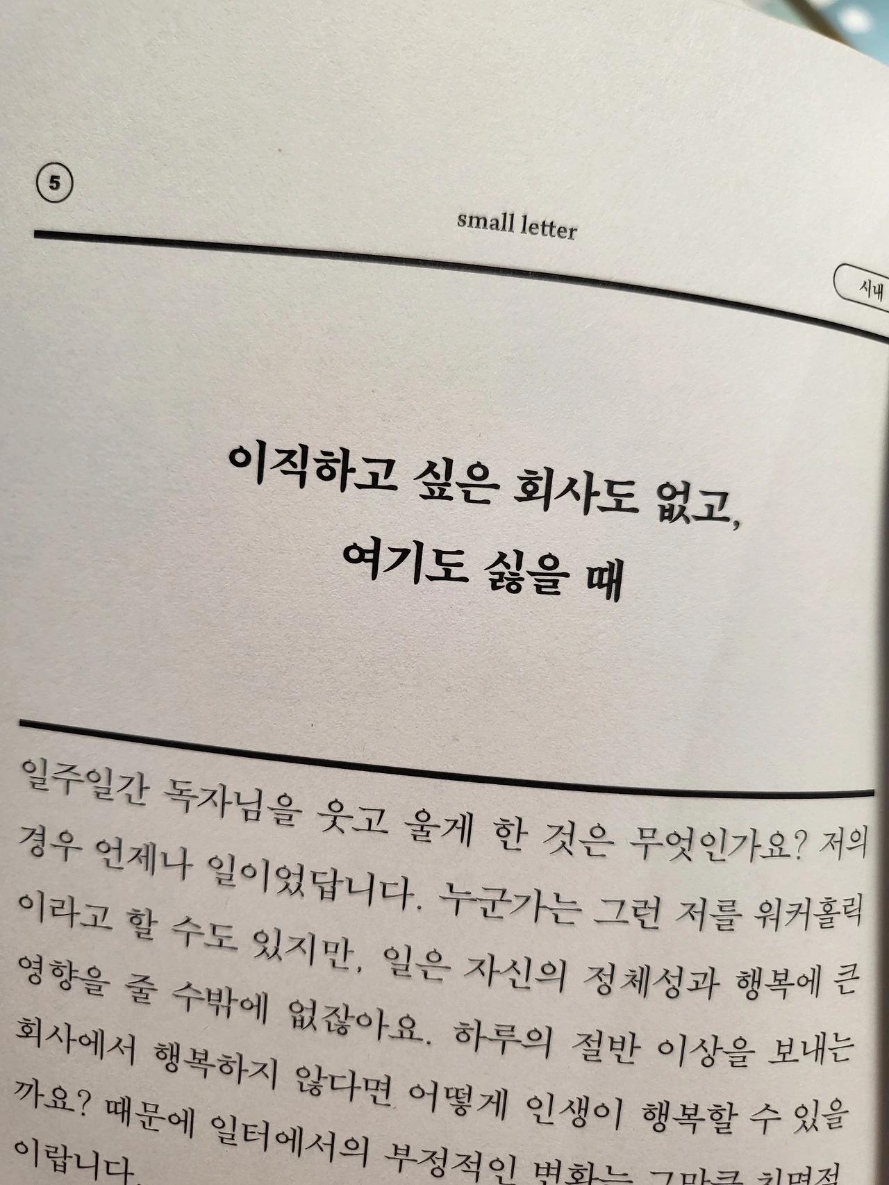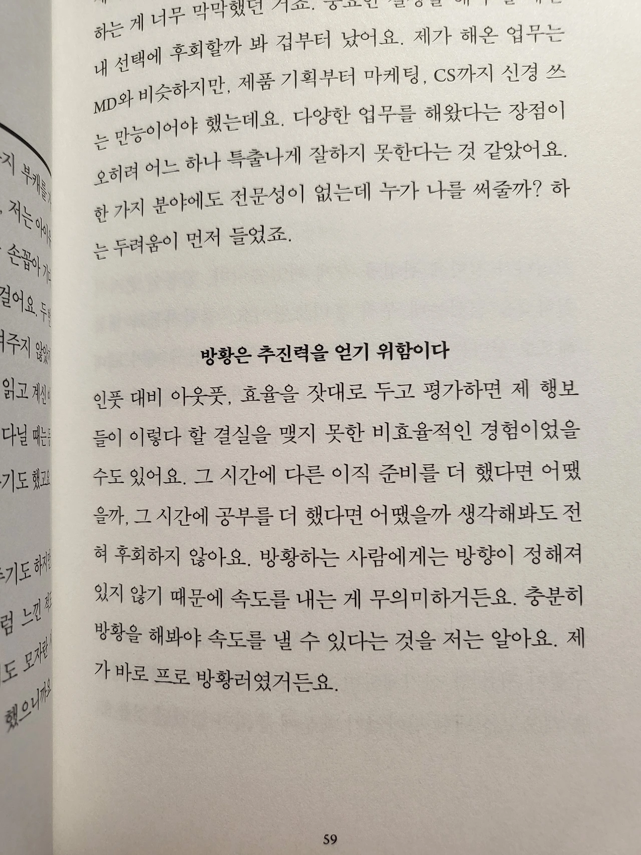 짧은 뉴스레터 형식이고 인터뷰 형태의 글이기 때문에 각각 목차별로 쉽게 공감하면서 읽었다. 어느순간 취업 포털 사이트 검색은 멈추고 나에게 도움이 될만한 책을 읽는다면 이런 책이겠구나 싶어 자기 전 조금씩 쓱쓱 읽어내려갔다.