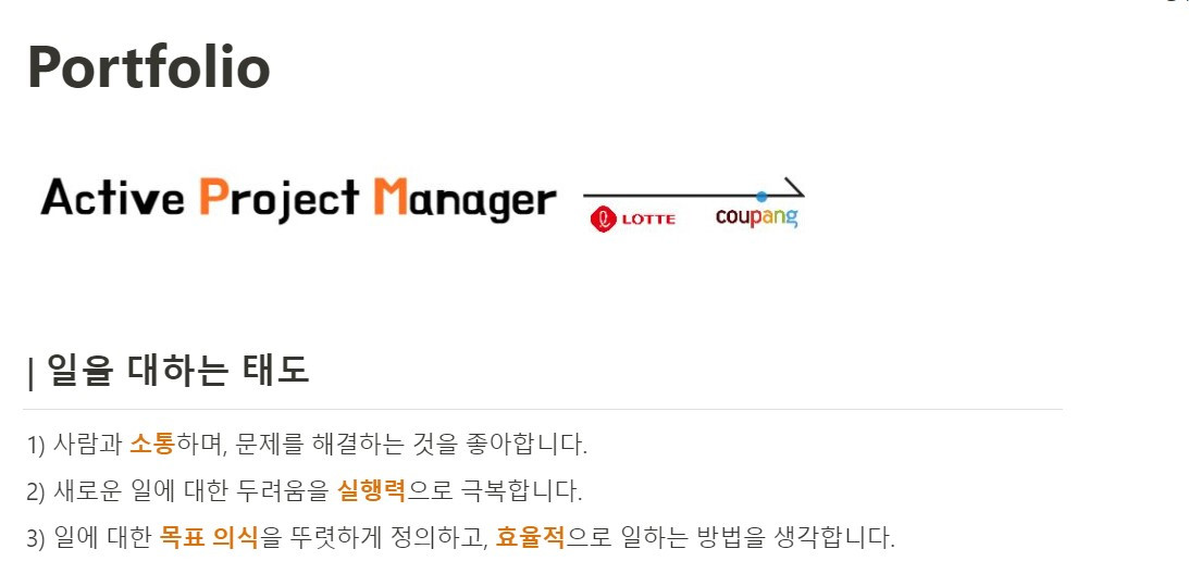 회사 이념, 직무 필요성에 나를 끼워 맞추지 않고 지금까지의 경험을 돌이켜보고 내가 바라보는 강점, 역량과 나아가고 싶은 방향성을 나의 관점으로 포트폴리오에 담기로 했다.