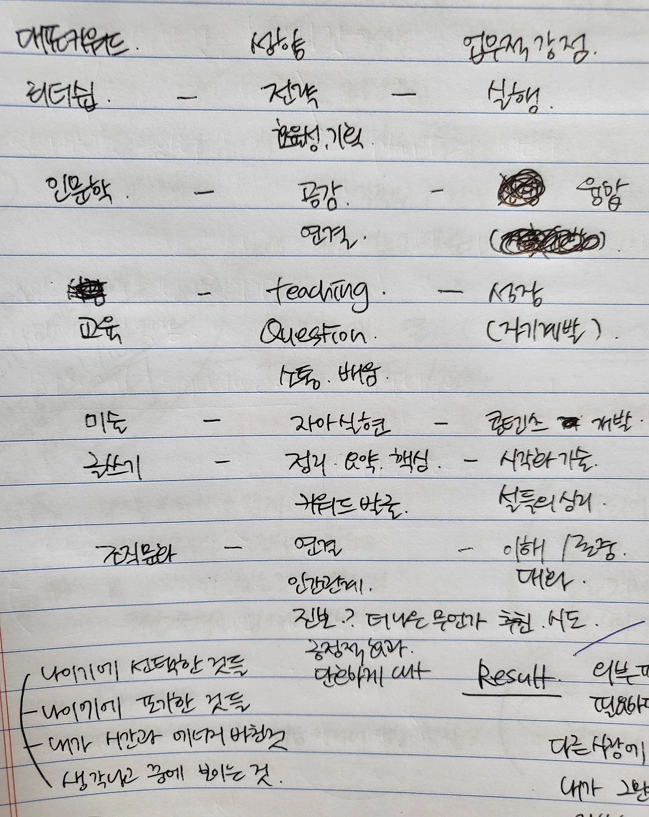 공식처럼 작성해야 하는 필수 영역들을 나의 언어로 바꾸어 의미를 재해석했다.