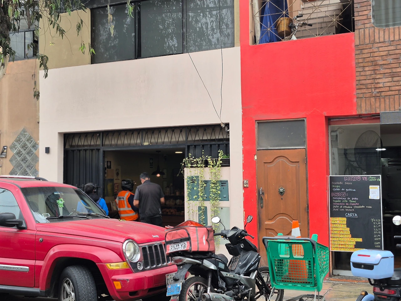 가게엔 3명이 줄을 서있었고 배달 오토바이도
