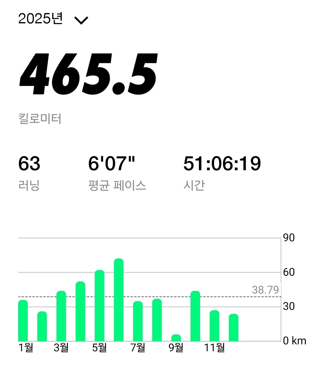 작년 9월쯤에 무릎 통증 이슈로 고생했더니 2025년 세웠던 기록과 목표에 차질이 생겼다. 1년 동안 누적해 총 500km를 달리겠다는 목표는 보란듯이 실패였다.