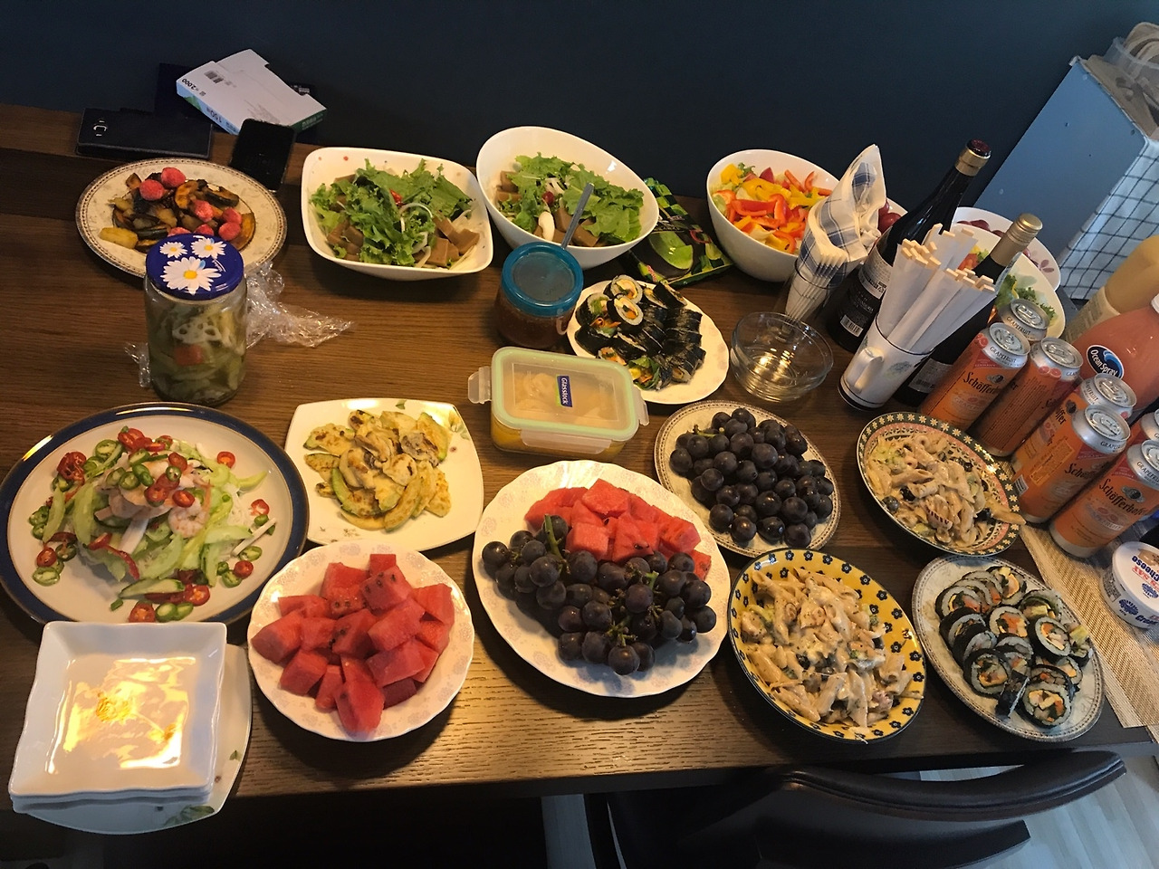 열띤 수업이 끝나면 각자 하나 씩 준비해 온 먹거리로 점심을 차린다. 열기가 달아오른 공부상이 화려한 성찬 식탁으로 변신한다. 함께 밥을 먹으며 나누는 대화는 사춘기로 온 집안을 긴장시키는 아들, 취업 난에 힘들어하는 딸, 군대간 아들, 남편의 실업, 치매 걸린 친정 엄마, 대학에 입학 한 딸, 바로 내 곁의 이야기를 나누고 들어주고 위로하고 축하해주는 시간이 된다.