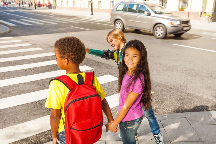 보행자가 우선이긴 하지만 특히 등교 시간은 출근하는 차량과 겹치는 시간입니다. 차량 운전자도 서두르고 있으므로 안전을 위하여 보행을 확실하게 담보받지 않았다면, 차를 먼저 가도록 기다리고 보행하도록 지도해 주세요.
