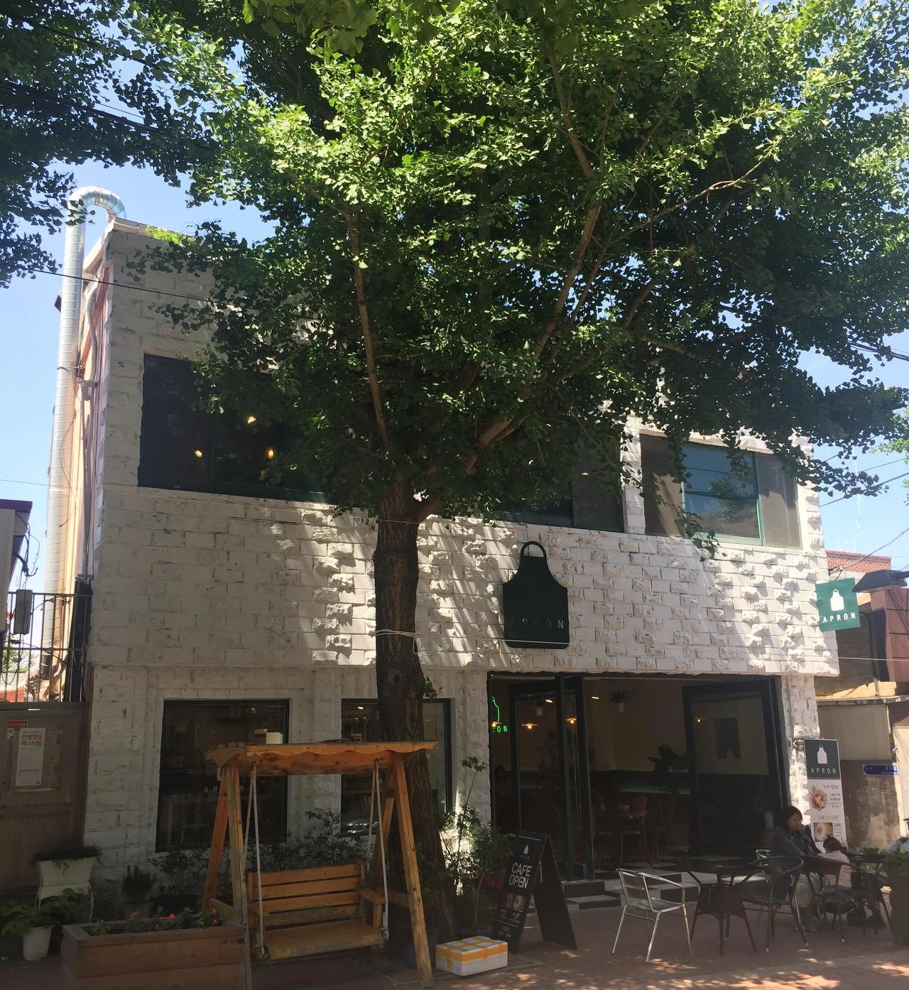 큰 나무 그늘 아래 여유롭게 자리 잡은 부부의 카페