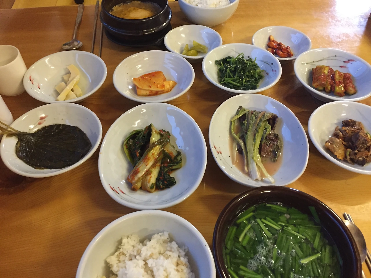 메뉴는 청국장과 재첩국. 재첩은 섬진강 재첩을 떠올리게 만들었고(나도 이 식당에 오기 전에 강에서 재첩을 줍다 왔다 ^^) 청국장의 맛이 평소에 먹던 것과 조금 달랐다. 뭔가 덜 짜고 더 건강한 맛인데 밥을 쓱쓱 비벼먹으면 맛이 배가된다. 간판에 청국장 전문점이라고 쓰여 있었던 이유가 있었구나! '반찬은 리필 불가'라는 안내가 있었는데 주인 할머니는 우리들에게 먹고 부족한 반찬이 있으면 얼마든 더 줄 수 있다고 많이 줘서 남길까 봐 그렇다 하셨다. 찬이 나오고 보니 그 이유를 알 것 같았다. 정말 우리 할머니랑 우리 이모들이 만든 것 같은 반찬들이었다. 이런 정성 가득한 반찬을 남긴다면 얼마나 아깝겠냐 말이다!! 맛은 또 얼마나 건강한지요.