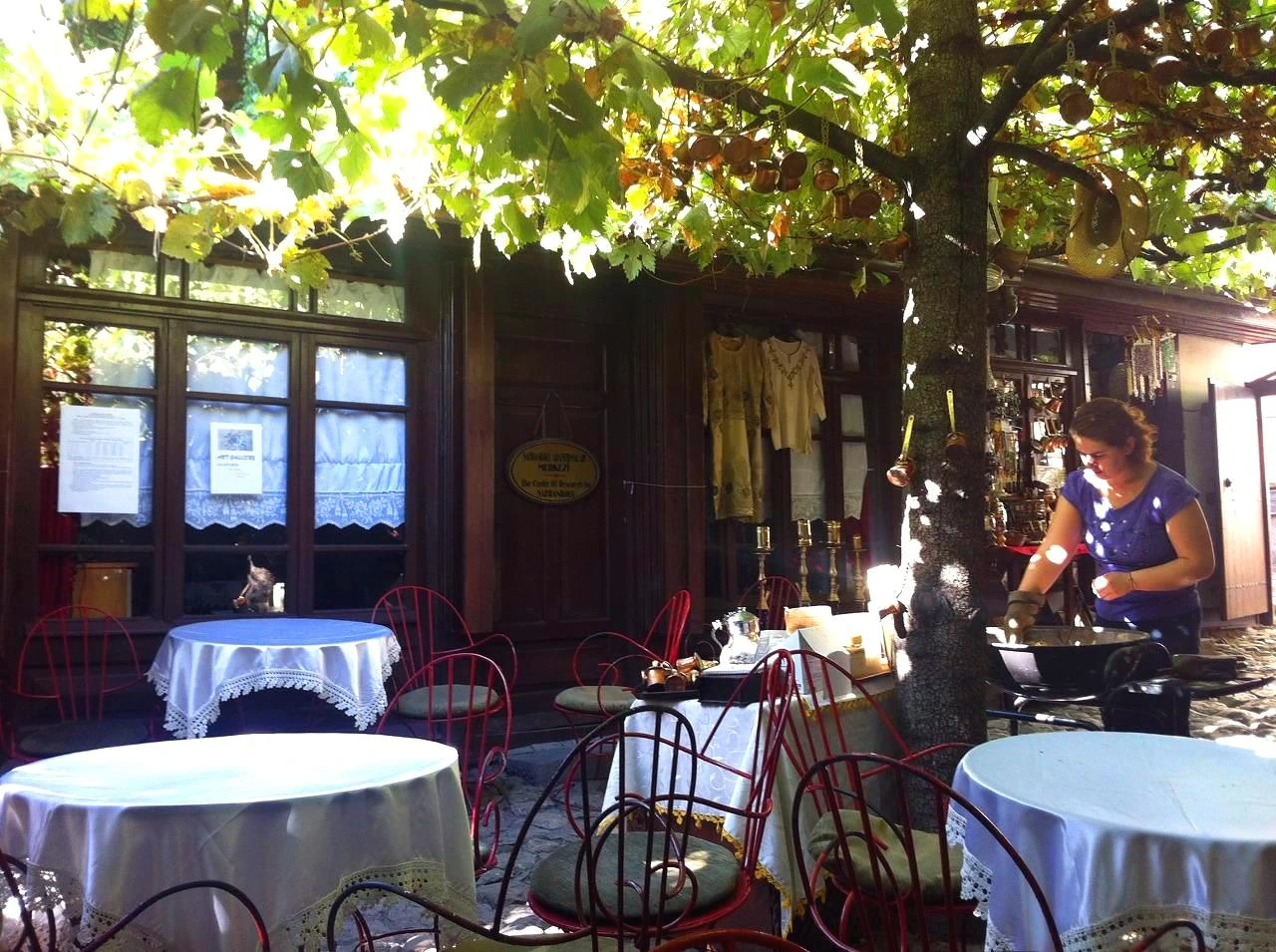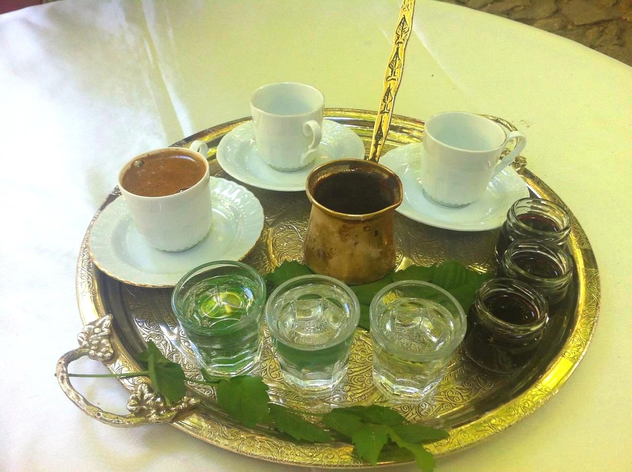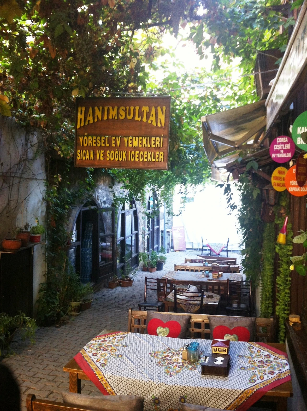 포도나무 가지에 금색 커피 잔(제베즈)들이 주렁주렁 달려있다. 주인 언니는 장갑을 끼고 장인 정신으로 오랜 시간 숯불을 피워 터키시 커피를 만들고 있다. 깨끗하게 닦은 잔들은 나무에 걸어 말린다. 야외 테이블은 흰 천이 깔려있고 나뭇잎을 통과한 빛들이 물방울무늬를 영롱하게 드리운다.