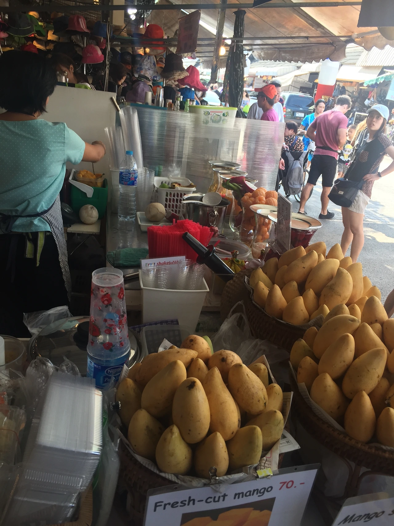 방콕에서 가장 재미있는 시장 놀이는 짜뚜짝 구경 일 것이다. 있을 건 다 있는 곳은 화개장터가 아니라 짜뚜짝이다. 아시아티크에서 본 가방을 안 사고 꾹 참았는데... 더 싸게 팔 때 참길 잘했구나란 생각이 드는 곳이다. 이니셜을 새겨주는 가죽 여권 케이스부터, 티셔츠, 코끼리 바지, 왕골가방, 에코백, 무드등, 작은 그릇, 소품까지 모든 물건을 만날 수 있다. 더위를 피해 아침에 가니 좋았다. 걸으면서 봉지를 하나둘씩 팔에 걸고 지칠 때 먹는 간식은 꿀맛이다. 나중에 돌다 보면 그 물건이 그 물건 같을 때 시장을 나오면 반은 성공.
