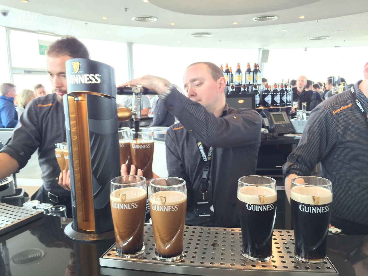 공장은 입구부터 꼭대기까지 기네스로 가득한 곳이었다. 대문부터 기네스, 입구도 기네스, 층층의 계단도 액자도 기네스, 기네스의 역사, 기네스의 제조과정, 기네스와 함께 한 사람들로 가득했다. 이 세상에서 가장 유명한 흑맥주에 대한 아일랜드 사람들의 자부심이 느껴지는 듯했다. 거대한 인격체처럼 보이던 기네스의 기운을 타고 꼭대기까지 올라갔다. 맑은 날 보면 더없이 멋질 것 같은 전망대는 회색 빛 하늘이 가득 차 있었다. 입장권을 구매하고 받은 쿠폰을 내밀었다. 즉석에서 기네스 생맥주를 한 잔을 따르기 시작했다. 맥주잔을 받으려고 손을 내밀자. 갈색 맥주가 검은색이 될 때까지 잠시 기다리라고 말했다. 그렇게 받아온 흑맥주를 한 입 꼴깍 마셨다.
