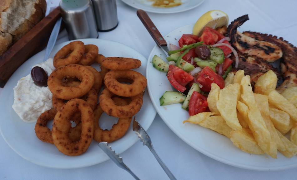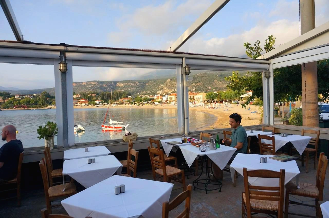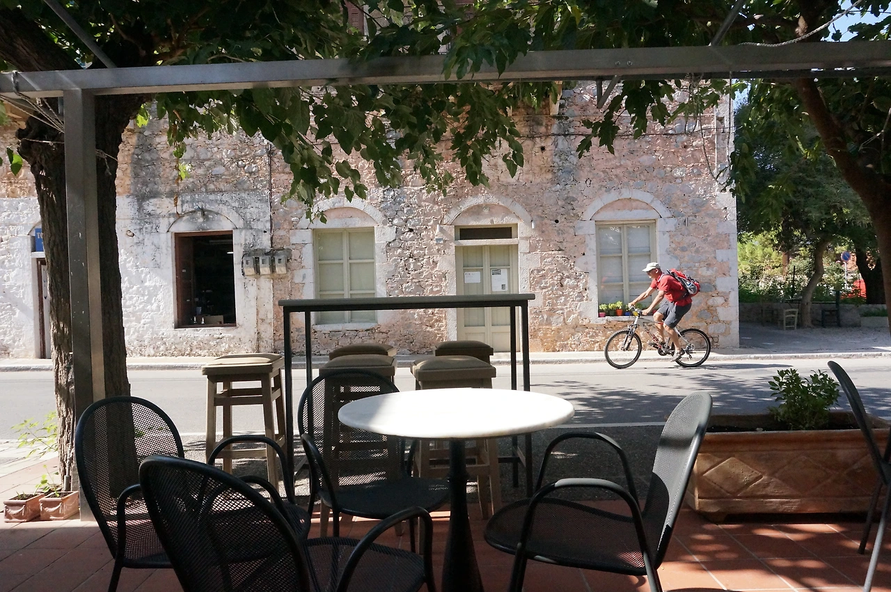 영어에 능숙한 렌터카 직원분이 우리 앞에 섰다. 젠틀하고 깔끔하신 모습처럼 일도 착착 처리해주시더니 지금은 시에스타 시간이라 렌터카가 오려면 저녁 5시까지 기다려야 한다고 난감해하신다. 점심을 먹었냐고 묻더니 밥이라도 먹고 오라며 칼라마타 맛집을 추천해주시다가 본인 차로 데려다주겠다며 함께 가자고 하셨다. 준비 없이 터미널에 내리기만 했는데 그리스인들의 도움으로 일이 하나씩 풀리는 게 신기하고 고맙기만 했다. 본인도 자주 가는 좋아하는 식당이라며 우리를 내려주셨다. 우선 이 도시부터 지내는 동안 한국인은커녕 단 한 명의 동양인도 만나지 못했다. 살면서 한 번도 상상해보지도 못한 낯선 마을인데 원래 알던 동네 식당처럼 편안했다. 시에스타 타임, 느긋하게 점심을 먹었다. 와인도 한 잔 하고!