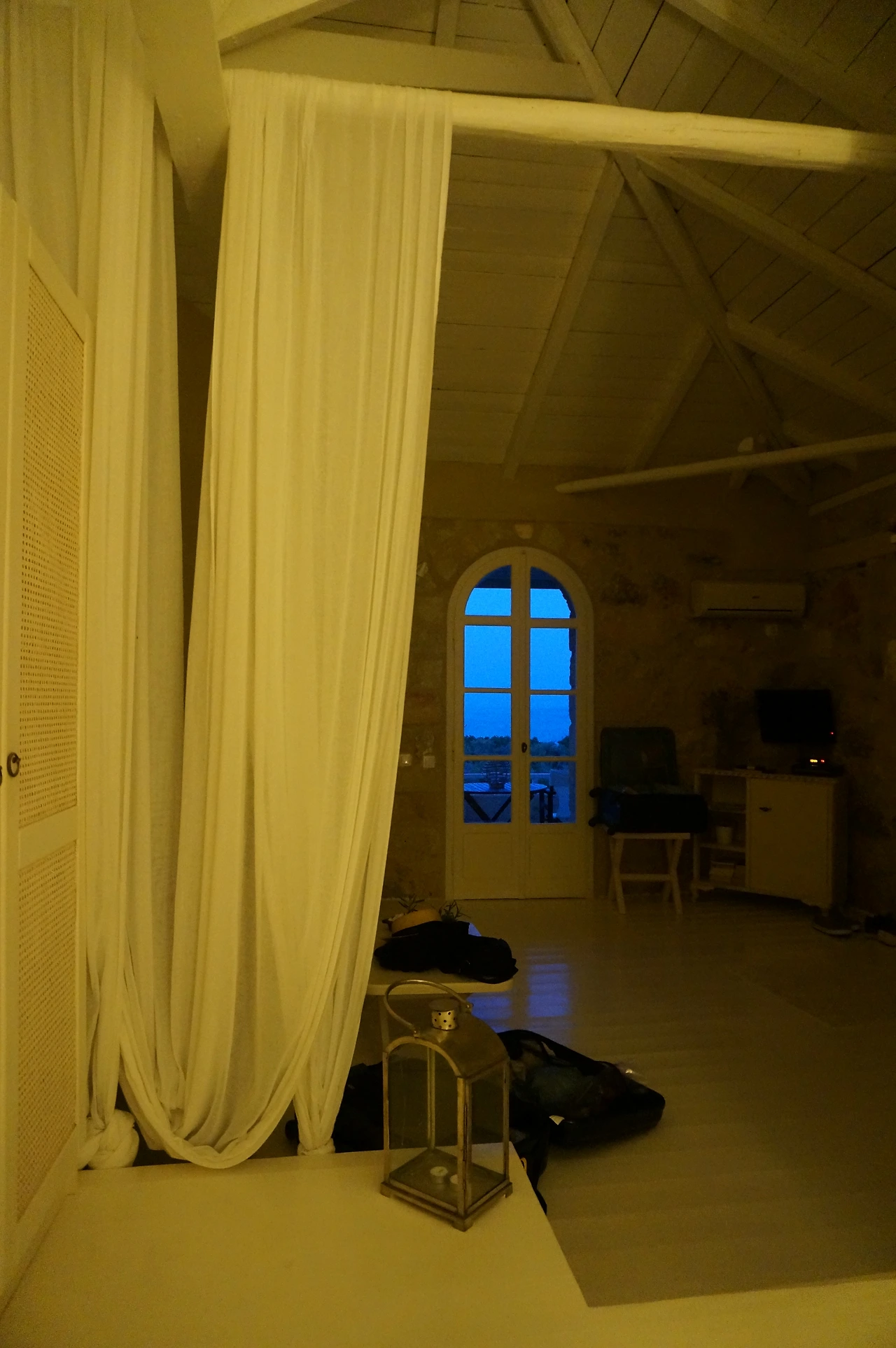 아침에 눈을 떴는데, 저 멀리 아치형 창문이 푸른 새벽으로 물들고 있었다. 창문 밖 풍경이 궁금해지는 순간이었다. 문을 열고 나가니 어젯밤 어둠 속에서 보지 못했던 카르다밀리 속살이 한눈에 펼쳐졌다. 와! 이런 곳이었어? 새로운 날이 시작되는 순간이었다.
