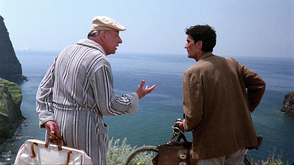 처음엔 순수함으로 가득 찬, 또 한편으론 서글퍼 보이는 우편배달부의 커다란 눈이 아름다웠다. 그다음에는 시인의 집으로 가는 언덕길이나 집에서 바라보는 바다와 파도치는 풍경이 아름다웠다. 서서히 우편배달부의 낡은 가죽 가방과 자전거로 시선이 이어지더니, 시인에게 선뜻 손을 닦으라고 내미는 갈색 옷 깃 까지 머문다. 그래 1994년 개봉한 이 영화의 카피는 '시와 바다와 자전거가 있는 영화'였다.