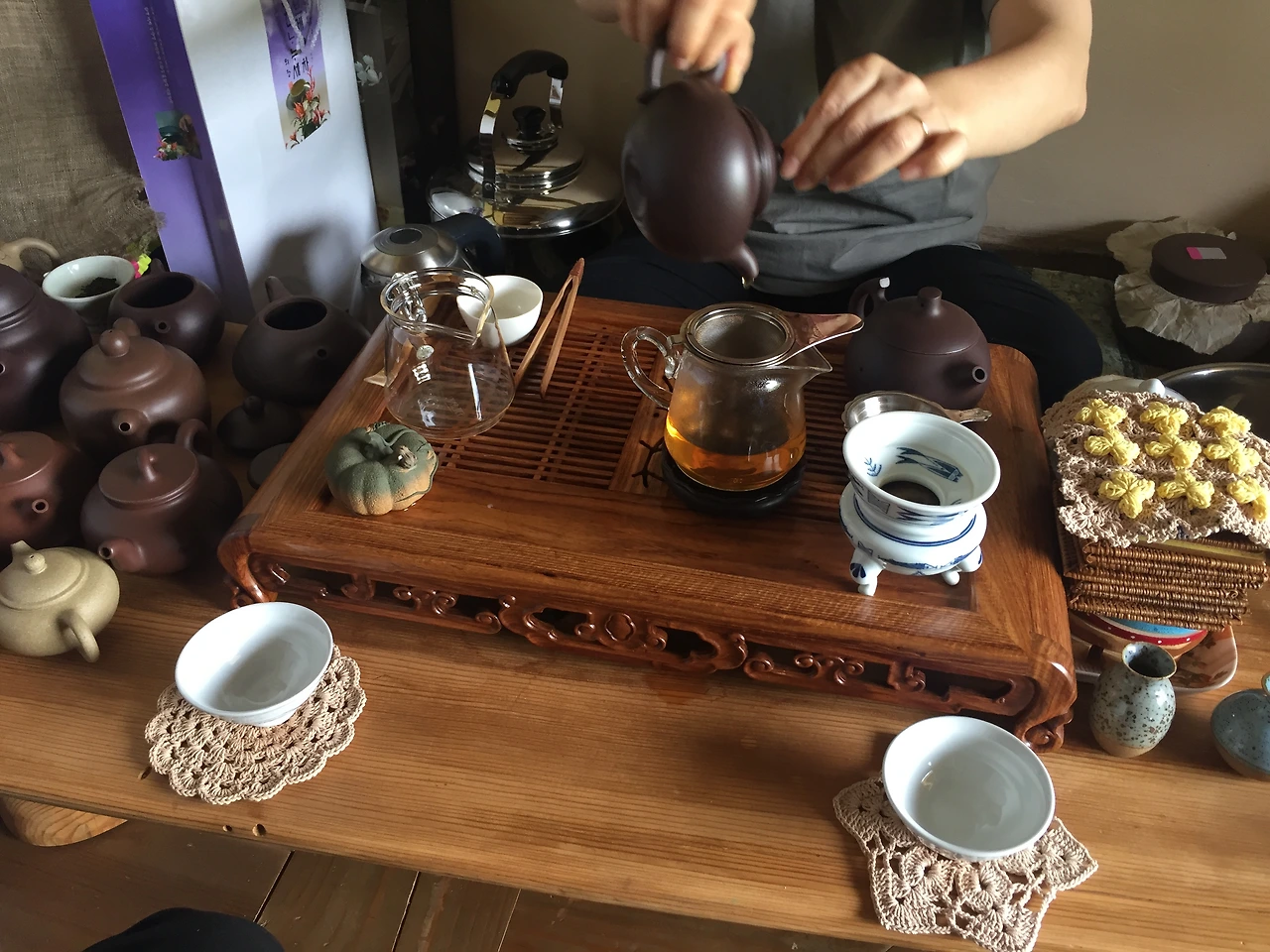 '차꽃오미(五味)'라는 이름에서 느껴지듯이 두 분은 모두 차를 공부하고 즐기시는 부부였고, 곧 행랑채에 찻집을 오픈할 예정이라고 하셨다. 자고 가지 않아도 좋으니 이곳을 지난다면 차를 마시러 오라며, 귀한 차를 계속 내어주신다. 보이차를 마시면 우리의 몸도 후끈, 맘도 후끈해졌고 스르륵 저마다의 이야기를 풀어놓게 된다. 이곳에서 했던 신기한 경험 중 하나가 정말 오랜만에 느껴 본 '낯선 사람과 대화의 즐거움'이었다. 나이가 한 살 두 살 먹을수록 익숙한 사람, 내 상황을 잘 아는 편안한 사람만 찾게 되는데 이곳의 다실 문을 여는 순간, 어제 옆방에서 잤던 처음 보는 분과도 대화를 할 수 있었고, 주인 부부님들과의 대화는 시간이 지나면 지날수록 우린 차처럼 깊어져 서울에 돌아오는 차 안에서도 서로 애틋함을 나눌 정도였다. 처음 만난 사람과 이야기를 나누고, 마음을 주고, 그리워할 수 있다니 오랜만에 느껴보는 낯선 행복함이었다. 돌아와서 찾아보니 '차꽃'의 꽃말은 '추억'이라고 했다. 정말 딱 맞는 꽃말이 아닌가 싶다. 물 좋고 공기 좋은 하동 악양의 품 속에서 피워낸 추억.