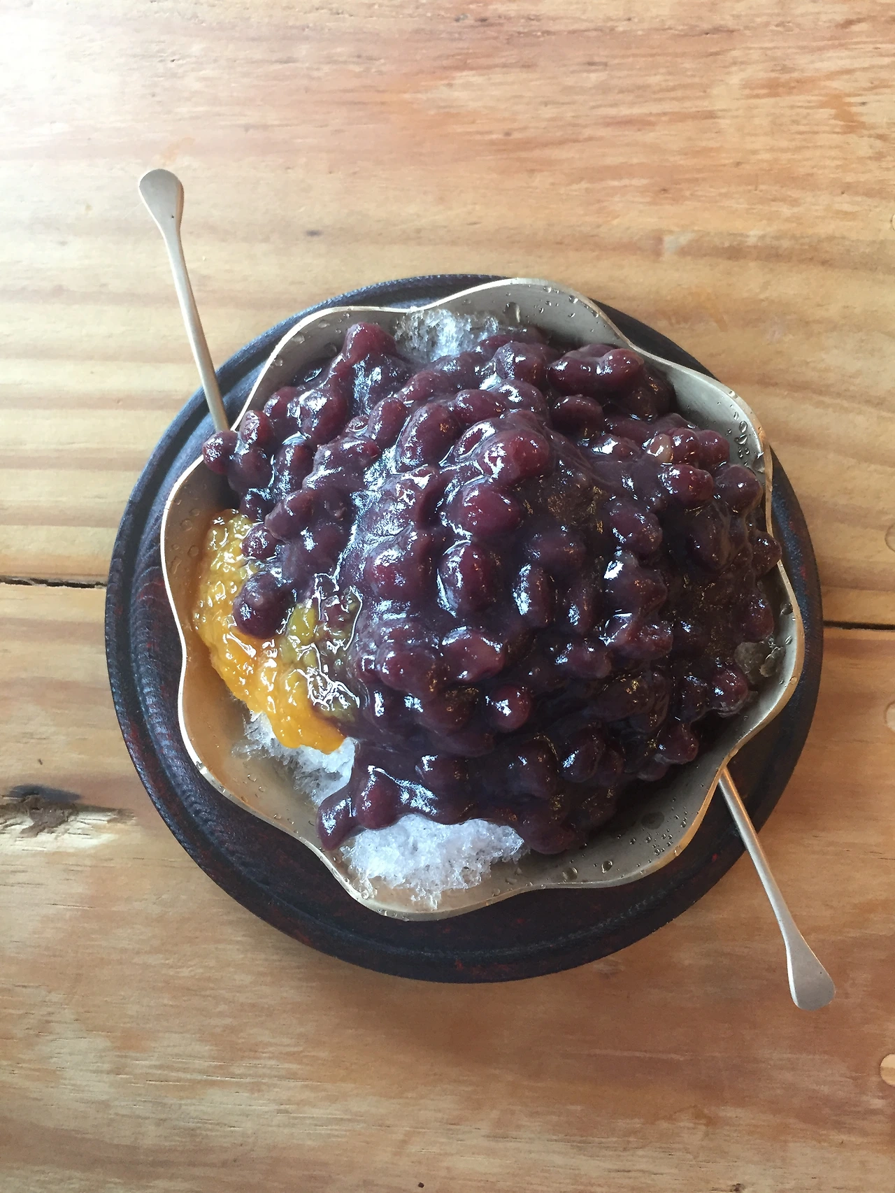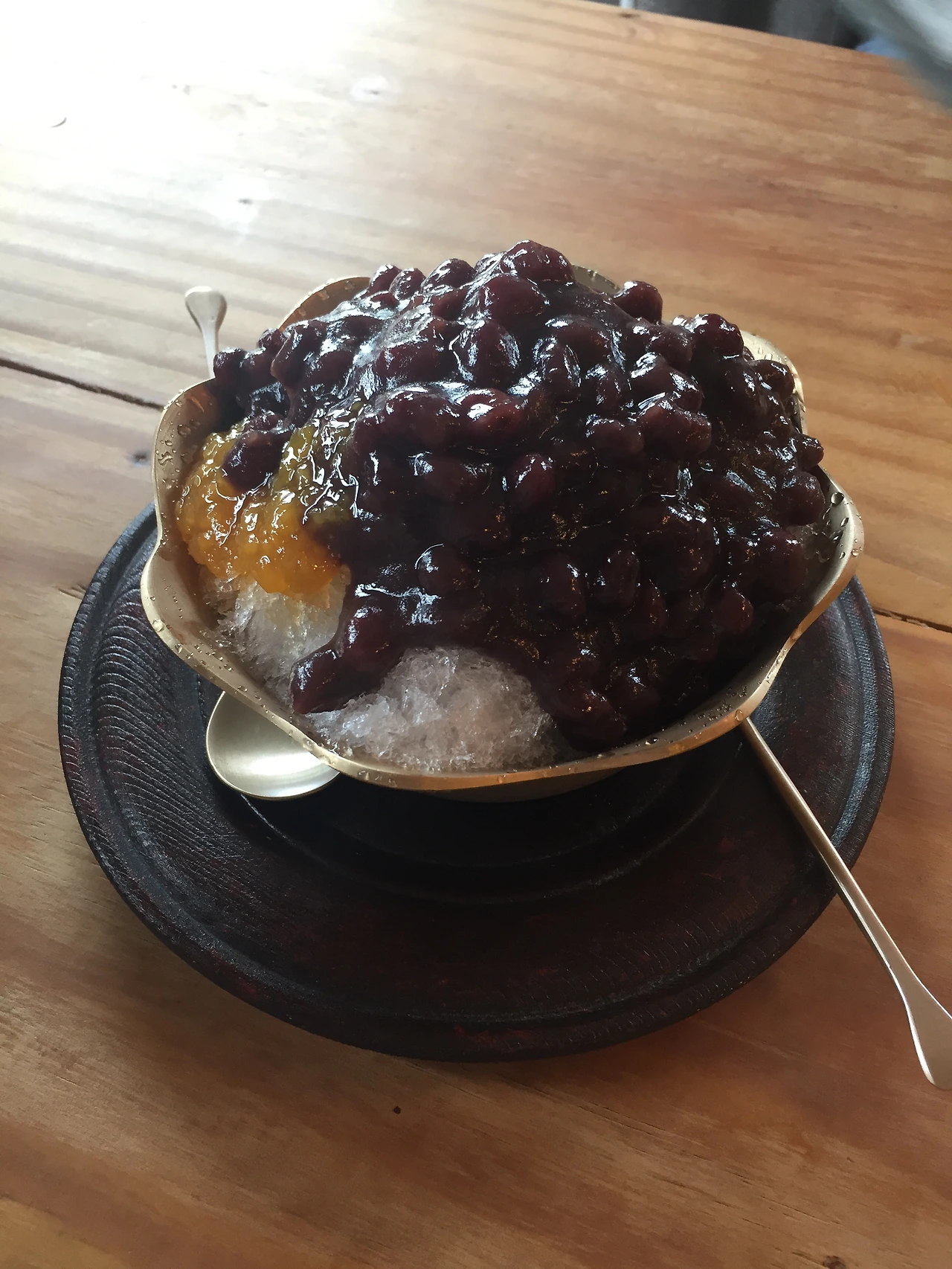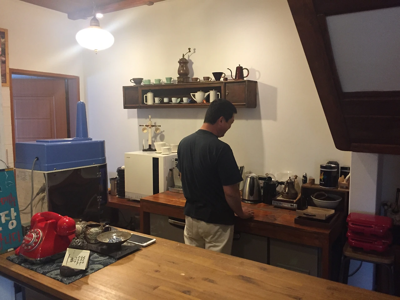점심 식사 후 우리는 이곳의 유일한 손님이었다. 자리를 잡고 빙수와 커피를 만들어 주신 주인아저씨와 두런두런 이야기를 나누게 되었다. 가장 궁금했던 것부터 물어봤다. "어쩌다가 여기에 팥빙수집을 내게 되셨어요?" 아저씨가 대답하시길 사람들은 여기서 장사가 되냐는 질문을 안 그래도 하시는데 이 집은 본인과 정말 인연이 있어 만났다고 하셨다.