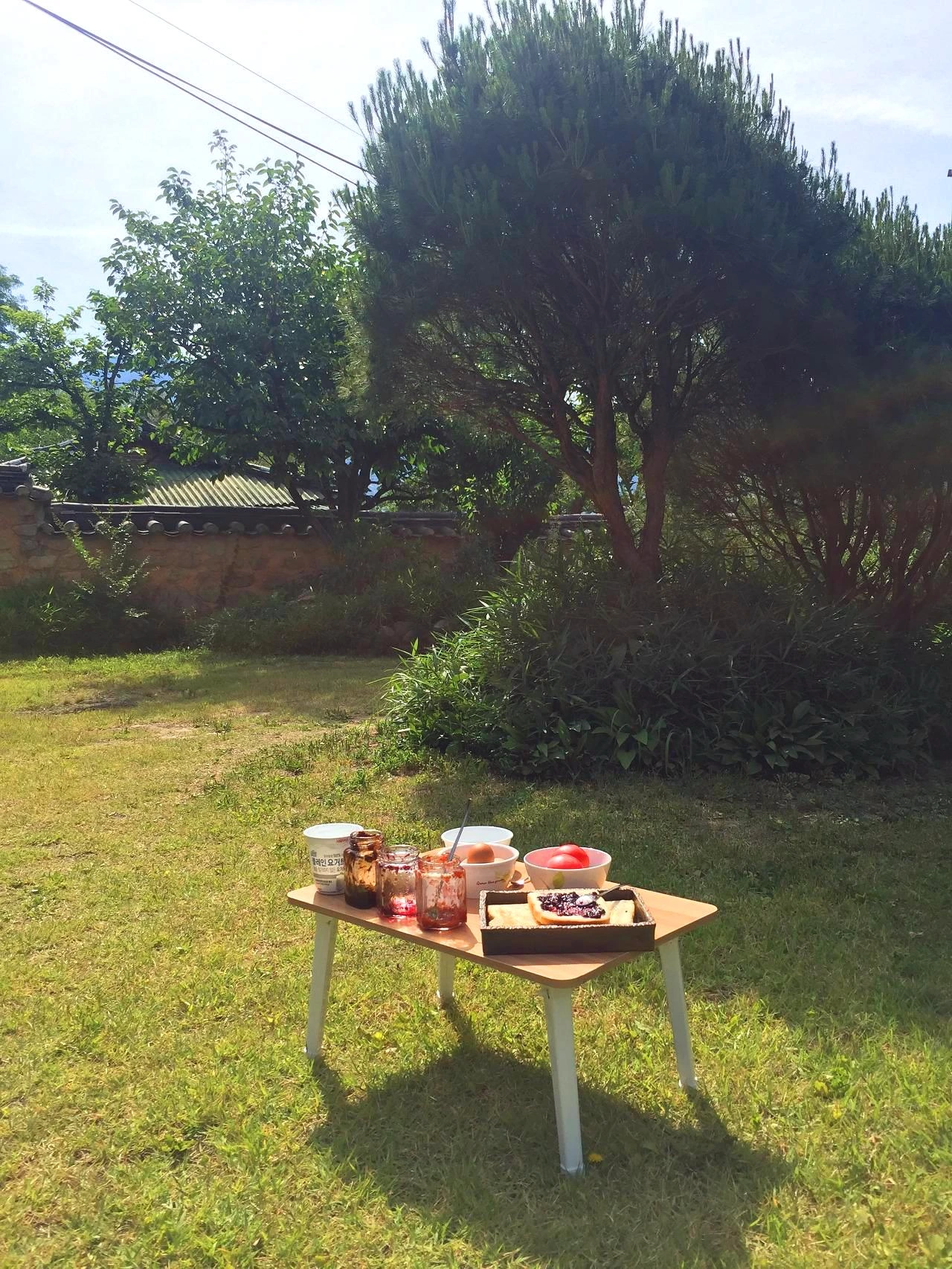 평일 민박 운영은 고스란히 남편분의 몫이다. 이불 빨래를 하고 고택의 뷰를 위해 단 한가닥의 빨래 줄도 허용하지 못한다는 남편분은 모든 빨래는 자가에서 말리신다. 아내분의 제안대로 방은 2번씩 닦고 본인의 성격상 화장실 청결을 특히 중요시해서 물기 하나 없는 화장실로 마감하신다. 이 마을에서는 꼭 필요하다는 냥이들의 밥을 챙기시고 밤이면 새로운 아침 메뉴를 탐구하시는 남편분! 고택 민박을 하기 전 초등학생을 대상으로 학원을 하셨고 그 보다 전 꿈은 개그맨이셨다고 한다. 그래서인지 정말 쉼 없이 이야기를 풀어놓으신다. 상황에 맞는 다양한 표정과 진지한 말투에 우리도 모르게 마음이 무장해제되어 크게 웃곤 했다. 아침을 먹을 때면 몇 가지 쨈을 내어주시고 설명하시고는 어떤 살구잼이 더 맛있는지 물어보는 것이나, 매우 진지하게 고객들은 어떤 샴푸, 린스를 기대하는지 의견을 묻고, 직구로 구매한 독일제 all in one 샴푸는 어떠한지 조사를 하는 모습이 아직 기억에 남는다. 오늘 밤은 또 어떤 고민을 하고 있으실까? 지금도 충분히 좋은데 말이지 :)