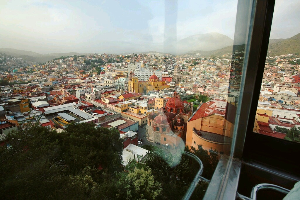 드디어 삐삘라 전망대에 도착했다. 케이블카를 타고 가파른 언덕을 거침없이 올라갔다.(왕복 50페소) 삐삘라 전망대는 과나후아또에 하루를 머무르든 일주일을 머무르든, 여지없이 모두에게 여행의 클라이맥스가 되는 장소일 것 같다. 케이블카를 타고 올라가는 짧은 순간동안 사람들은 시야 속으로 빠르게 들어오는 마을 풍경에 흥분을 감추지 못하고 소리를 질렀다. 성당이 장난감처럼 작아져가는 동안 마치 내가 삐삘라 동상만 한 거인이 되어가는 느낌이었다.