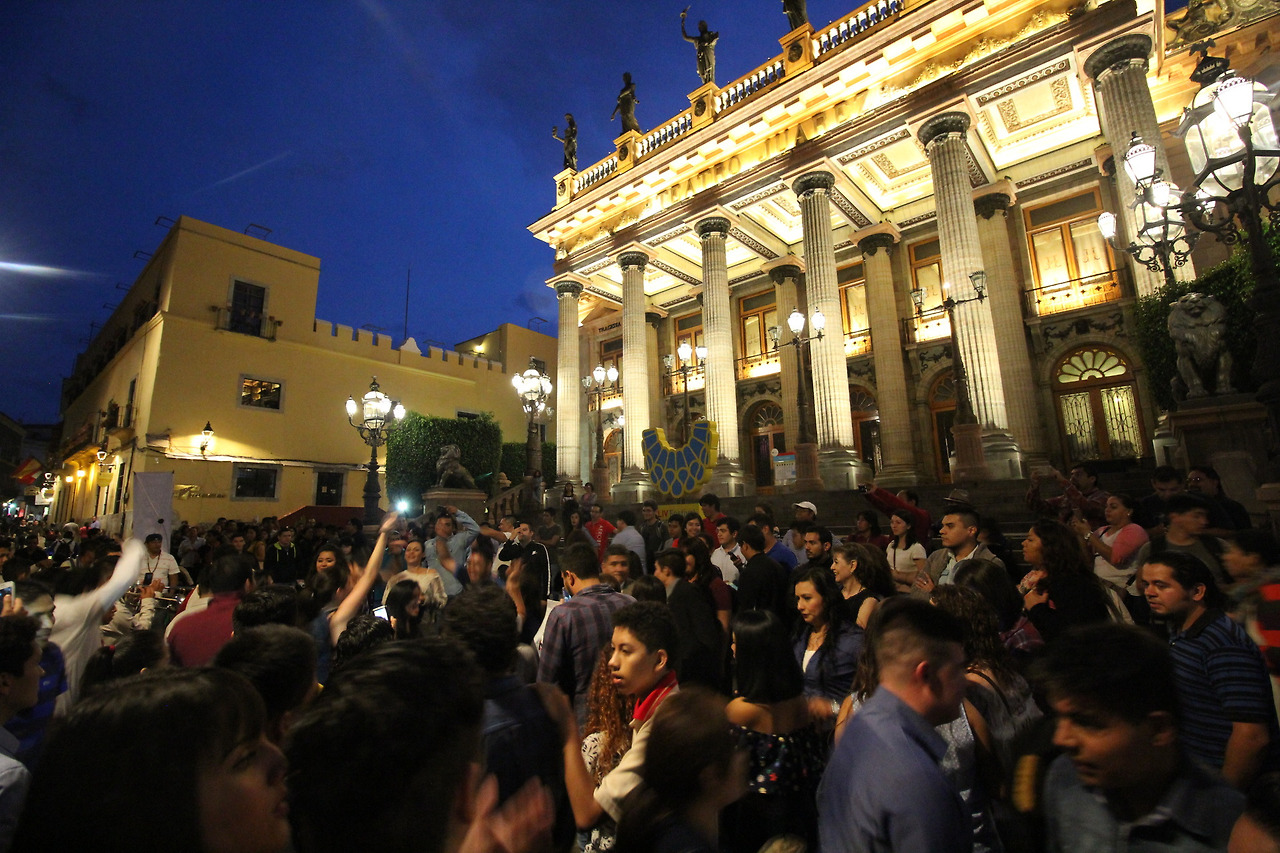 Jardín de la uníon(우니온 정원) 바로 앞에는 Teatro Juárez(후아레즈 극장)가 있다. 과나후아또에는 극장이 3군데 있는데 후아레즈 극장이 가장 메인이다. 나는 노란 성당보다 오히려 후아레즈 극장이 더 과나후아또의 상징처럼 느껴졌다. 축제 때문에 그랬는지는 모르겠지만, 특히 밤이면 분위기가 절정에 이르렀다.