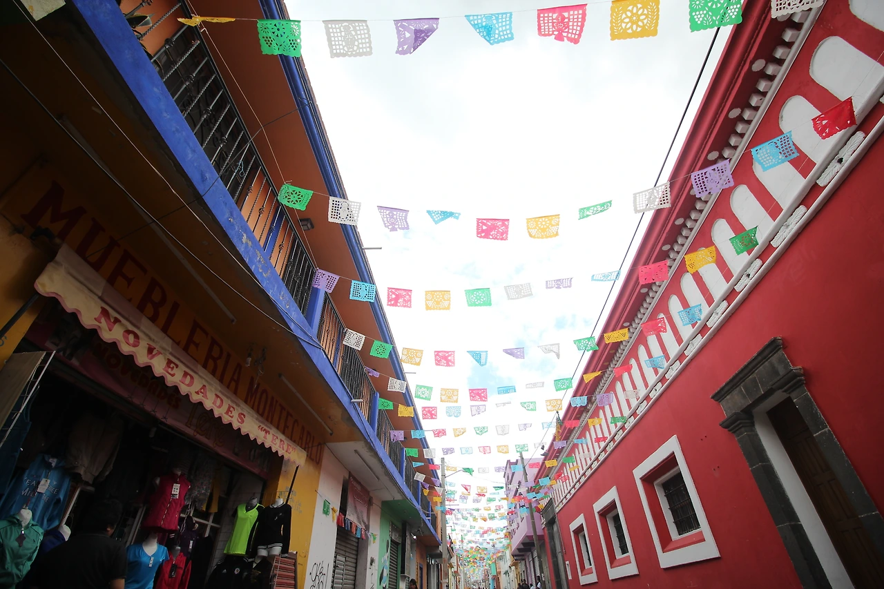 아무 데나, 아무렇게나 막 찍어도 깃발 장식들이 걸려 있다.