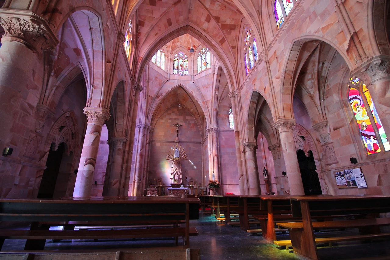 공원 쪽을 지나던 중 나무 사이로 날씬하게 모습을 드러낸 핑크빛 성당을 발견했다. 가까이 가 봐야지.