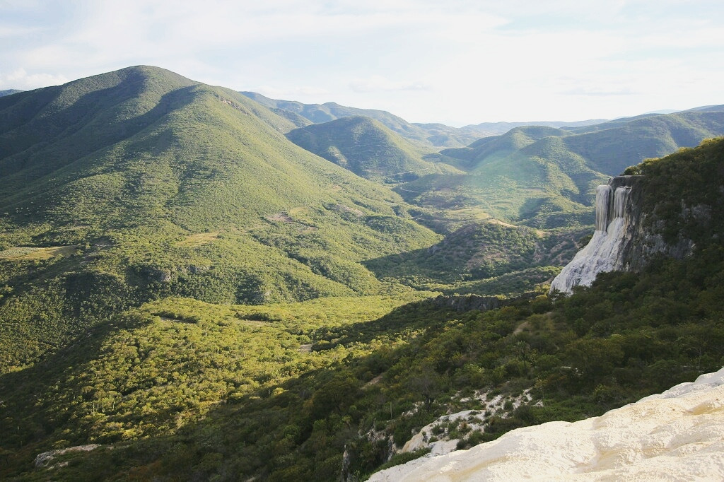 산길을 따라 조금만 걸어 들어가면 수풀 사이로 점점 Hierve el agua의 풍경이 나타난다. 여기에 오기 위해 긴 시간을 버텼기 때문일까, 그림자가 길어졌기 때문일까, 왠지 더 감동적인 풍경이었다.