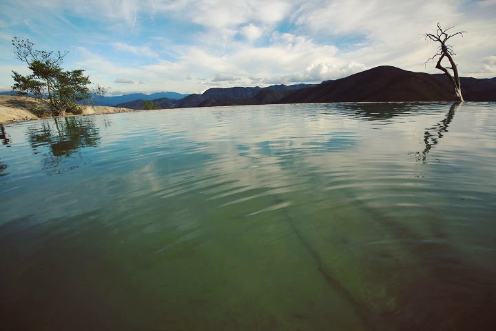 연못은 인공이지만, 땅을 자세히 들여다보면 곳곳에 조그맣게 석회수가 보글보글 올라오는 곳이 있었다. 그래서 이곳의 이름이 Hierve el agua(물이 끓는다)인 것이다. 끓는 건데도 전혀 뜨겁지 않고 미지근했다.