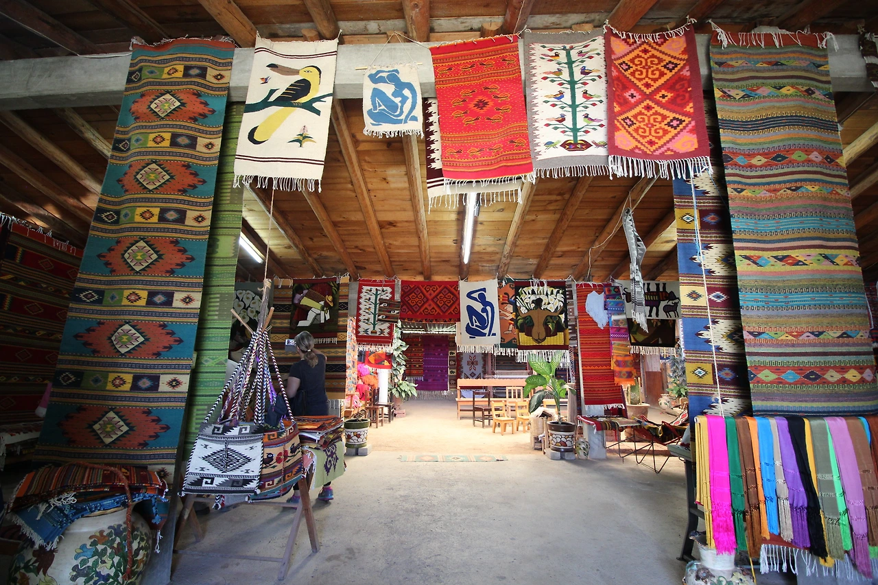 중간에 미뜰라 유적지와 식사를 위한 레스토랑도 들른다. 하지만 우리는 사장님이 추천한 대로 둘 다 가지 않았다. 미뜰라 유적지는 크게 볼 것도 없고, 경유지여서 패키지에 끼워 넣은 것이며, 레스토랑 역시 전형적인 관광객 상대의 식당이라 그냥 와하까 시내로 돌아와서 먹는 게 더 낫다고 하셨다. 우리는 우리끼리 미리 싸온 김밥도 먹고(중간에 한개씩 한개씩 뜯어먹다 보니 반밖에 안남아 있었다..), 미뜰랑 유적지 대신 뒤쪽 작은 시장을 돌아다니며 옷 쇼핑도 했다. 다들 하루 이틀 전 처음 알게 된 사람이지만, 여자들끼리 같은 티를 맞춰 사고 남자들한테 몸빼바지 같은 걸 추천해주며 기다리는 동안 즐겁게 보냈다. 같은 티를 살 때는 "우리는 무려 1명도, 2명도, 3명도 아니고 4명이 사는 건데 좀 깎아달라"고 딜을 시도했는데, 결국 흥정이 통했다!