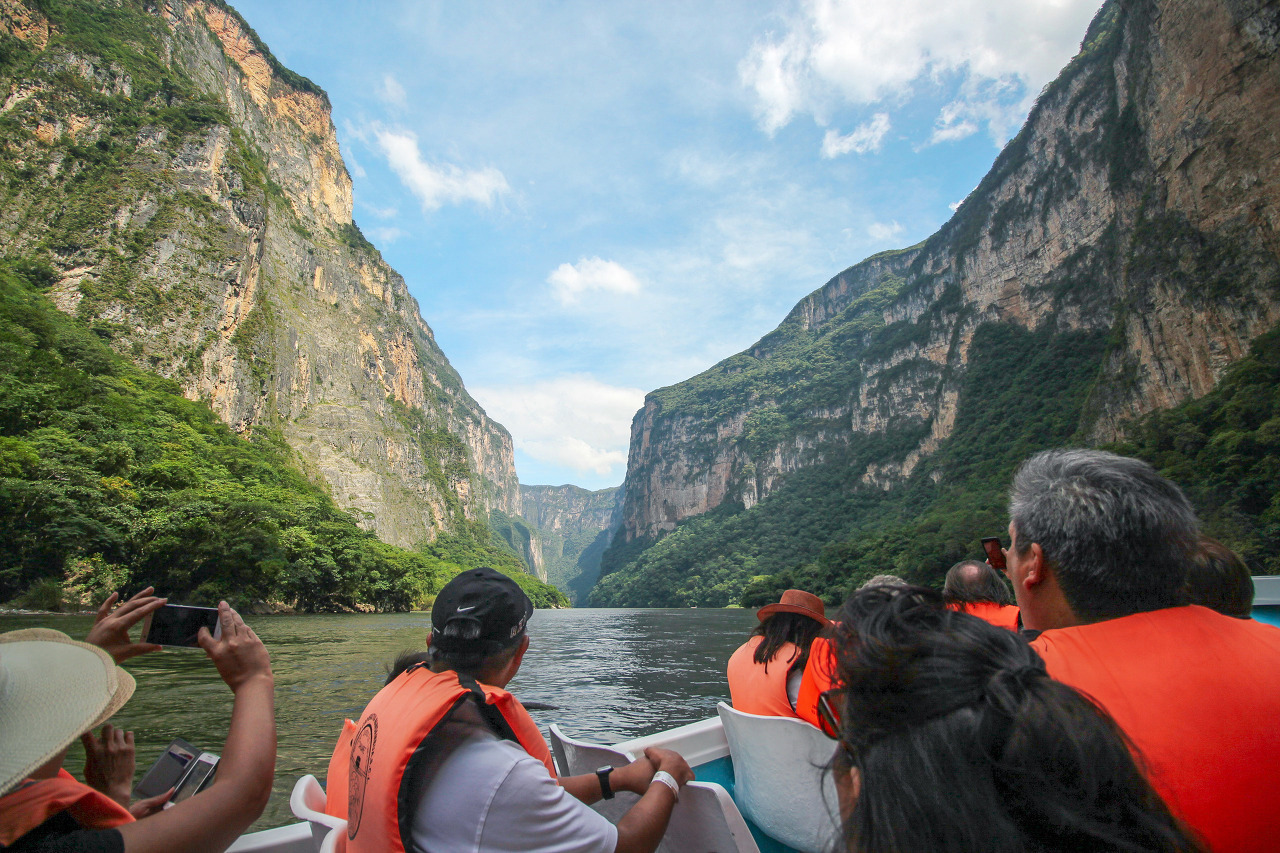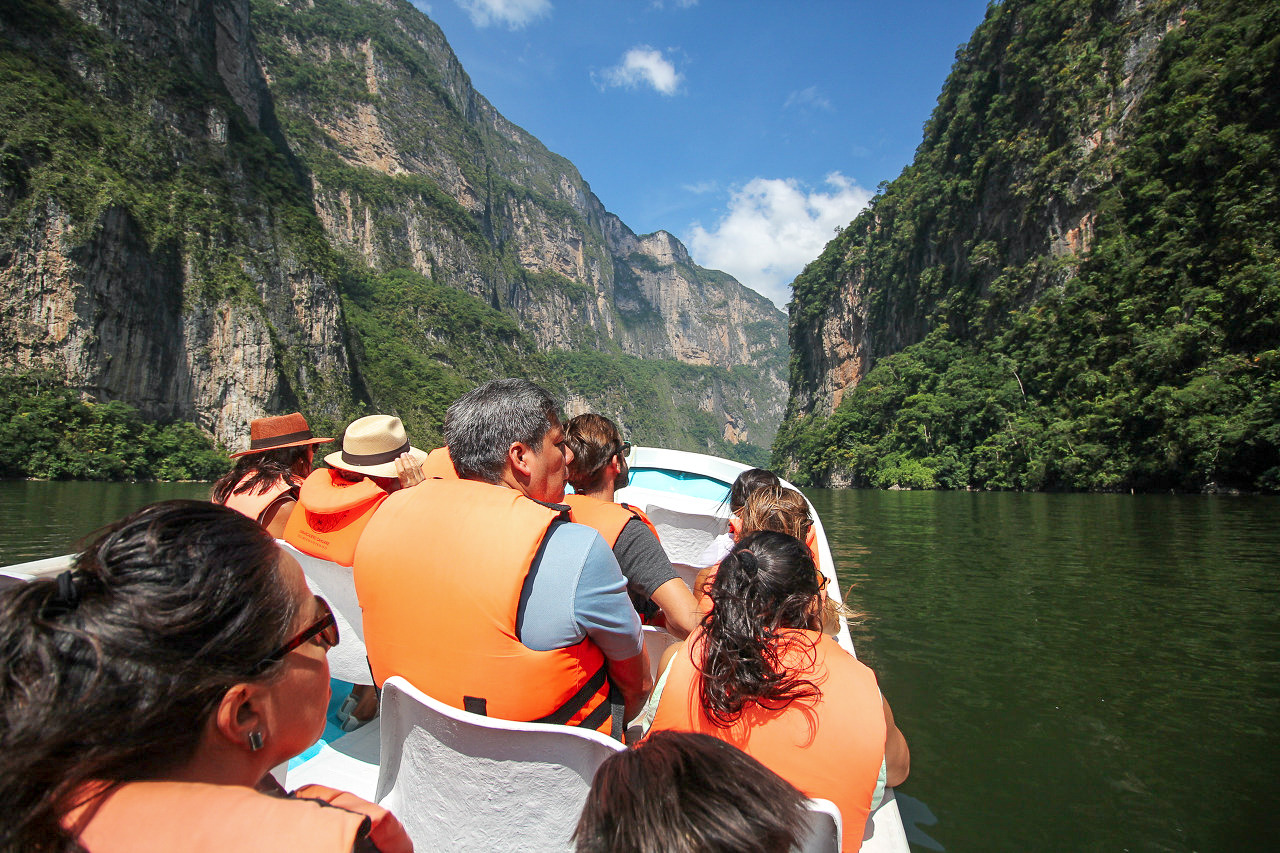 '수미데로' 협곡은 치아파스 주에 간다고 할 때부터 멕시코 사람들에게 자주 추천받던 곳이었다. 보트를 타고 한가운데로 와 보니 마치 사파리 속으로 들어온 듯 웅장한 느낌이다. 특히 양 옆으로 이어지는 1000m가 넘는다는 거대한 절벽이 가장 인상적이었다. 히말라야 산맥 어딘가로 홀려 온 듯했다.