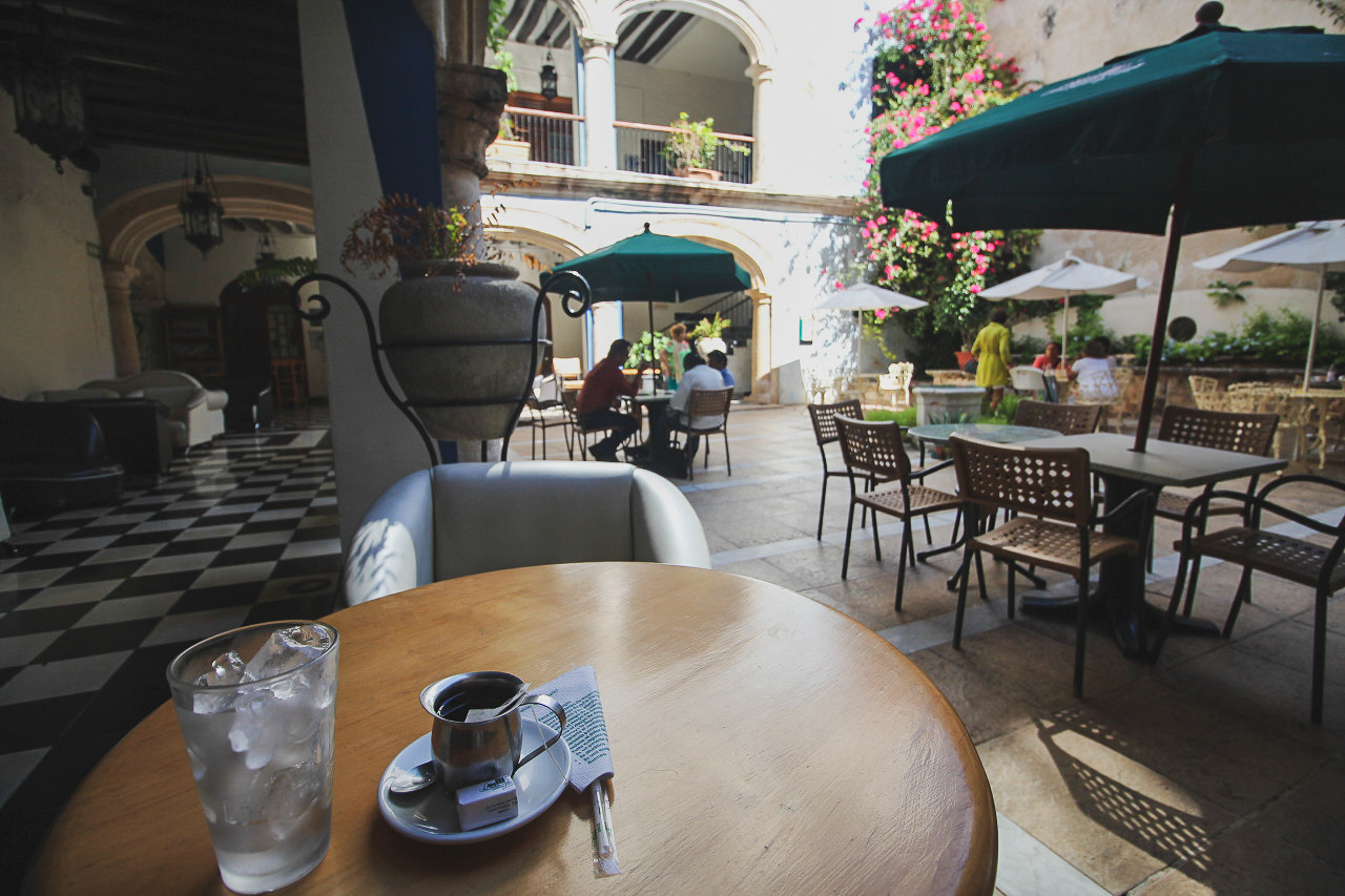 성당이 있는 깜페체의 센뜨로 쪽으로 가서 눈에 들어온 까페떼리아에 바로 들어갔다. 역시 이곳에도 아이스 아메리카노가 없었지만, 늘 그랬듯 얼음을 따로 받았다. (이렇게 더운 멕시코에 아이스커피가 없다는 것도 이상한 것 아닌가?하는 생각을 하면서)