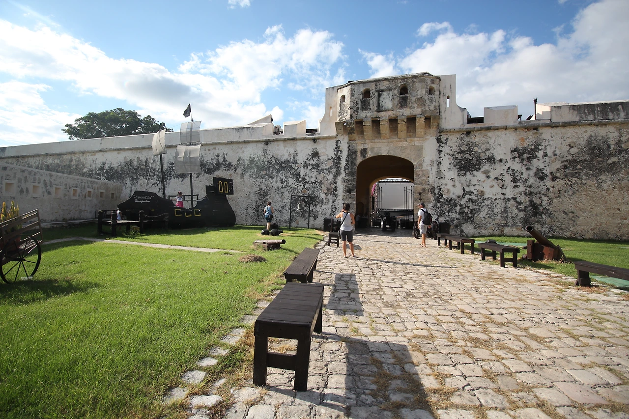 깜페체는 예로부터 지정학적 이유로 인해 상업이 번영했다고 한다. 특히 천을 붉게 물들이는데(천연염색) 필요한 Palo de Campeche라는 나무의 수요가 높았는데, 이때문에 해적이 자주 침입했다고 한다. 깜페체 사람들은 배를 만들고 선원을 키웠지만, 해적들이 자꾸 침입해 약탈과 학살을 일삼아 결국 그들로부터 보호하기 위해 성벽을 세웠다고 한다.