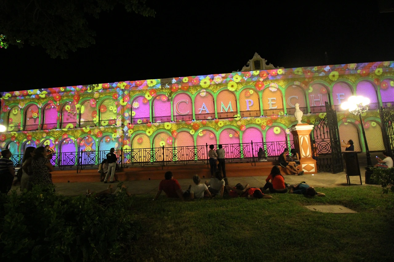 빛 축제는 깜페체의 메인 광장에서 열린다. 밤이 되면 광장의 한쪽 변에 위치한 Palacio Municipal(시청)은 대형 스크린으로 변신하고, 이 위에 도시에 관한 다양한 이야기들이 화려한 빛으로 펼쳐진다.