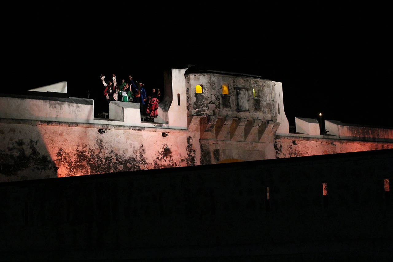 깜페체의 밤은 화려했다. 어둠이 잦아들면 이 작은 도시에 존재하는 모든 성벽은 스크린이 되었다. 도시 전체가 마치 하나의 거대한 영화관 같았다. 어젯밤엔 깜페체 영화제가, 오늘 밤엔 빛 축제가 깜페체의 성벽들을 물들였다. 아브라암과 함께 걸어가다 보니 또 다른 성벽의 한편에서 4:3의 아담한 스크린이 비춰지고 있었다. 성벽 위에서 실제 사람이 등장해서 연극처럼 이야기를 이어가기도 했다. 나중에 이들과 기념사진도 찍었다.