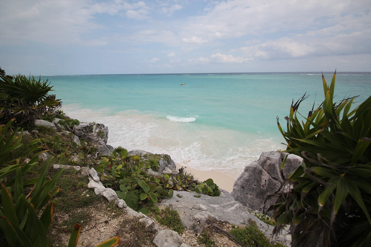 유적지 옆쪽으로 조금만 더 걸어가면 해수욕을 할 수 있는 해변도 있다. 나는 수영을 못 해서 혼자서 들어갈 생각은 없었지만 혹시나 하는 마음에 수영복을 챙겨 왔다. 하지만 오는 길에 제대로 햇볕에 구워지고 나니 시원한 바다에 들어가고 싶어 졌다. 드디어 멕시코에서 처음으로 입수(!)하게 되는 것인가..!