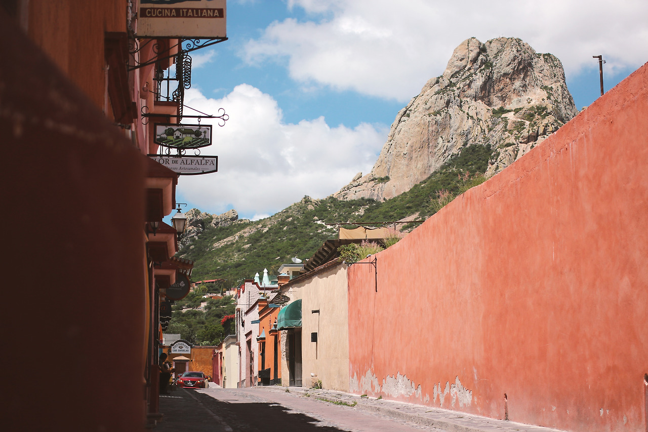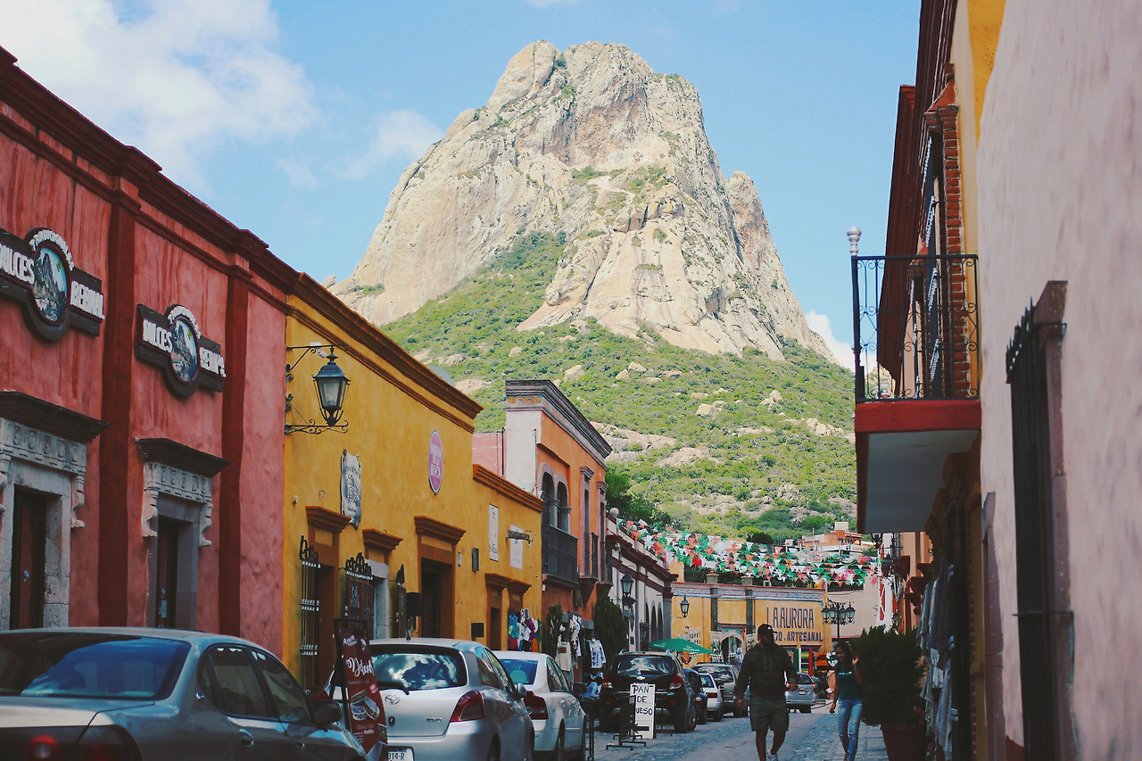 Peña de Bernal(뻬냐 데 베르날). 세계에서 3번째로 크다는 돌산이 있는 마을이다. 페루 마추픽추에 갔을 때 우뚝하고 거친 역사 속으로 끝없이 올라가는 느낌이었다면, 이곳은 아담한 마을 뒷동산을 시선 닿는 대로 바라보는 느낌이었다. 살면서 한 번도 본 적 없는 사뭇 이국적인 풍경임에도 불구하고, 까페떼리아에 앉아 돌산을 바라보며 커피를 마시는 장면이 쉽게 그려졌다. 그래서일까, 세계에서 3번째로 크다는 수식어가 퍽이나 거짓말처럼 느껴졌다.