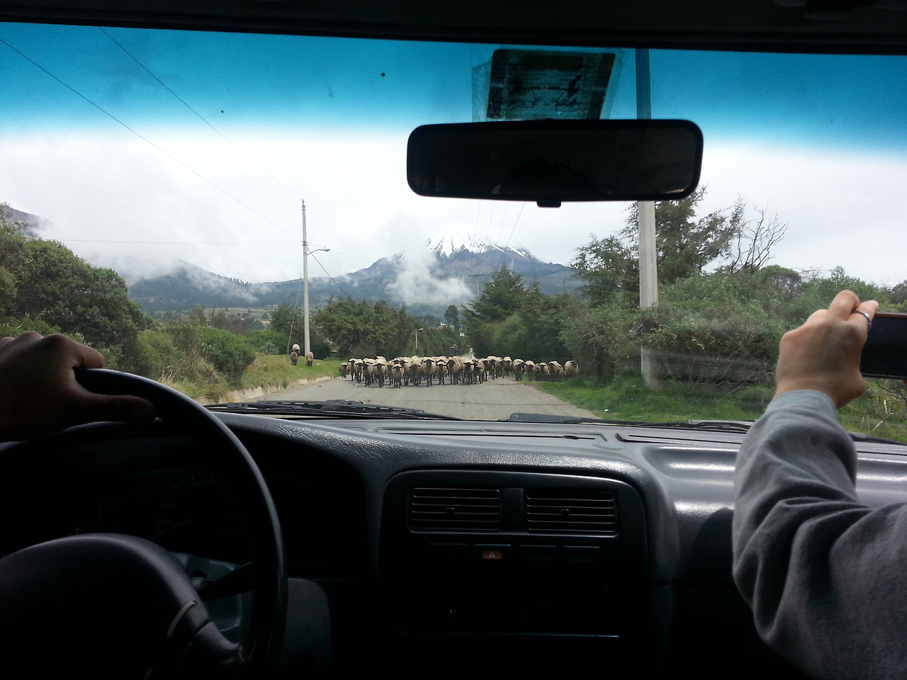 우리는 멈춰 섰고, 양들은 알아서 차를 피해서 옆으로 지나갔다. 새하얀 봉우리를 배경으로 문명에 탑승한 우리를 향해 거침없이 행진해 오는 양떼라니, 정말 멋지다. 우리는 마치 그들의 영역에 멋대로 들어온 손님이 된 듯한 기분으로, 그들이 내어 준 길을 지나갔다.