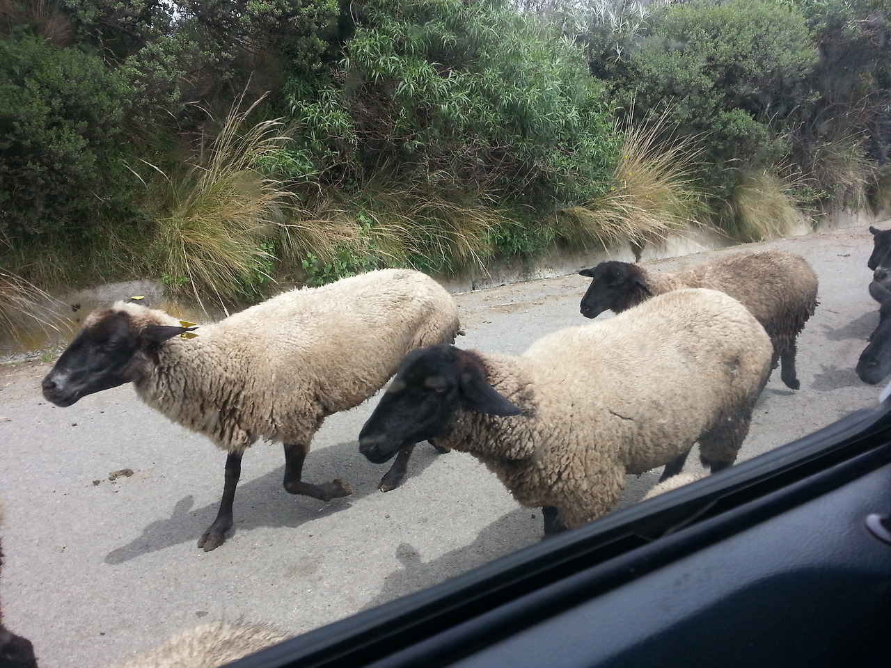 양 떼의 습격! 올라가는 길에 소처럼 그려진 표지판들이 군데군데 있었는데, 이 낯선 표지판은 야생 동물에 대한 주의 표시였다. 아니나 다를까, 조금 후에 양 떼가 나타나기 시작했다.